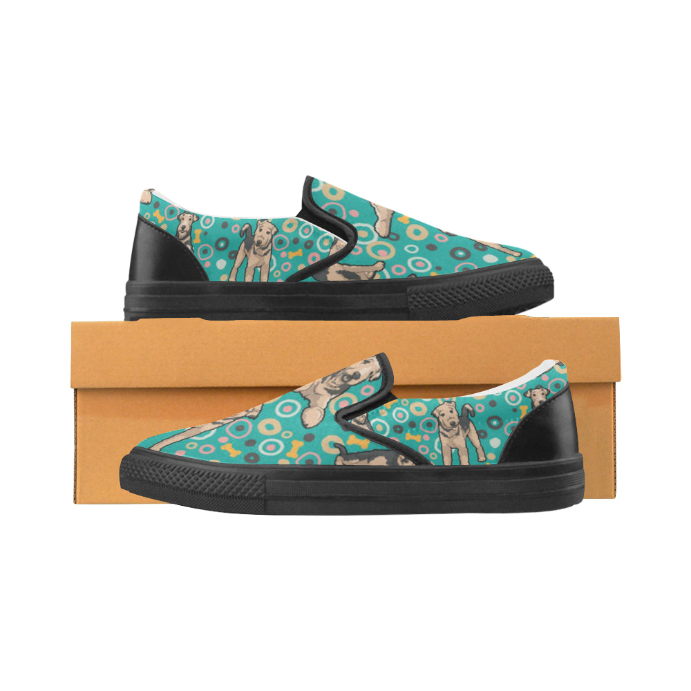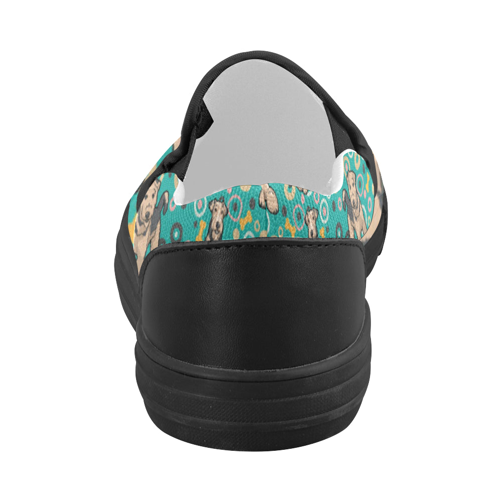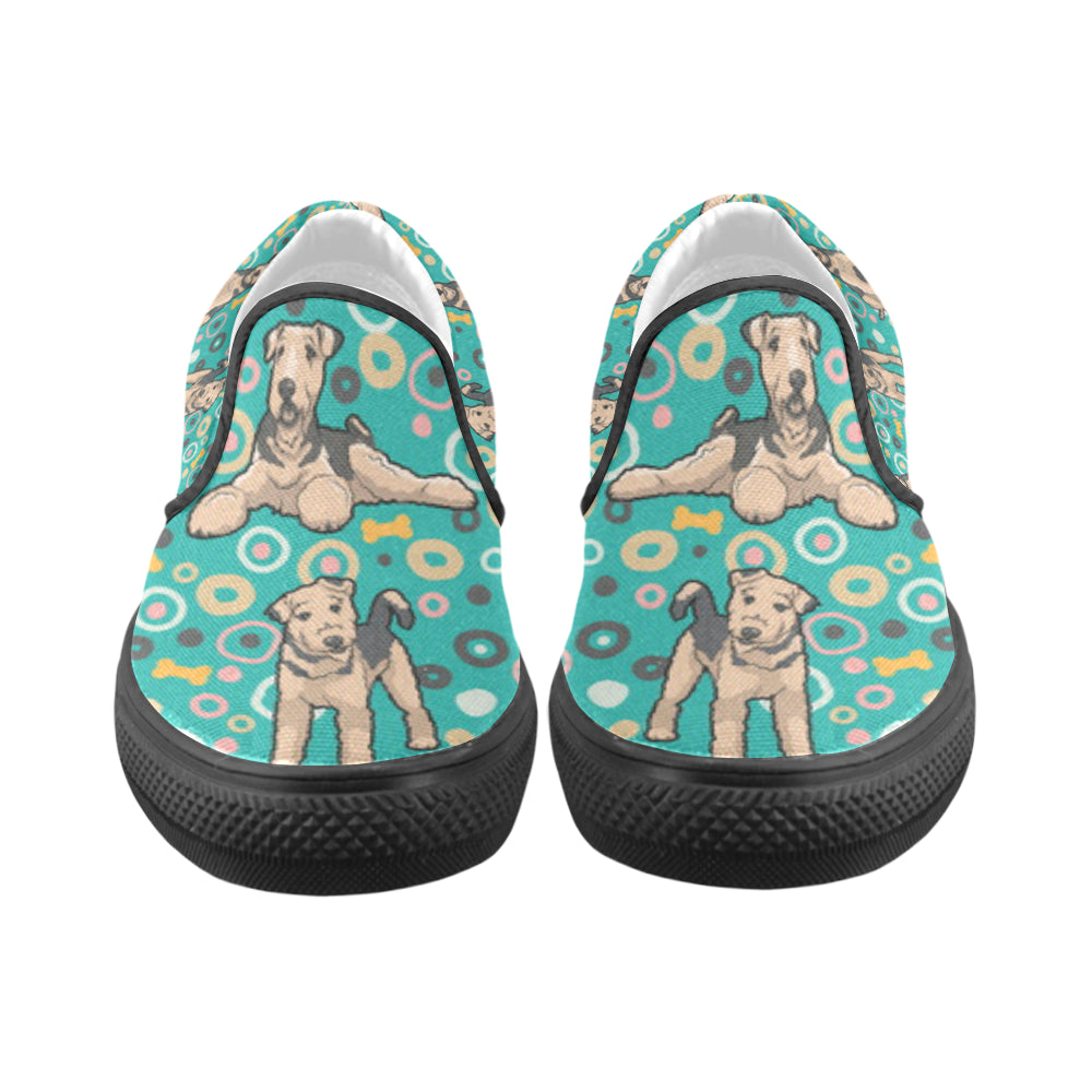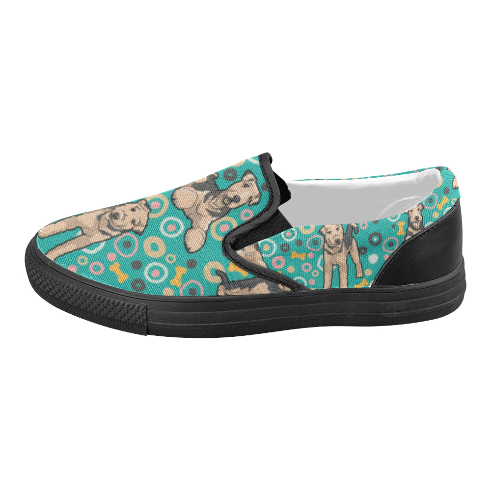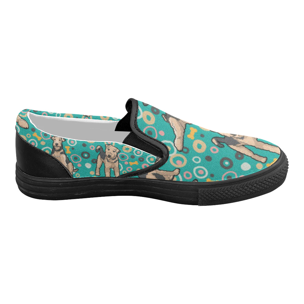 Airedale Terrier Pattern Black Women’s Slip-on Canvas Shoes
