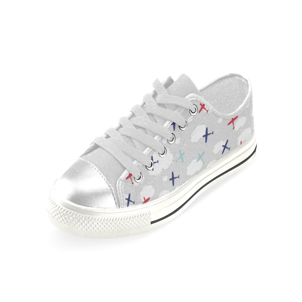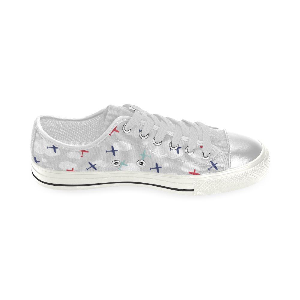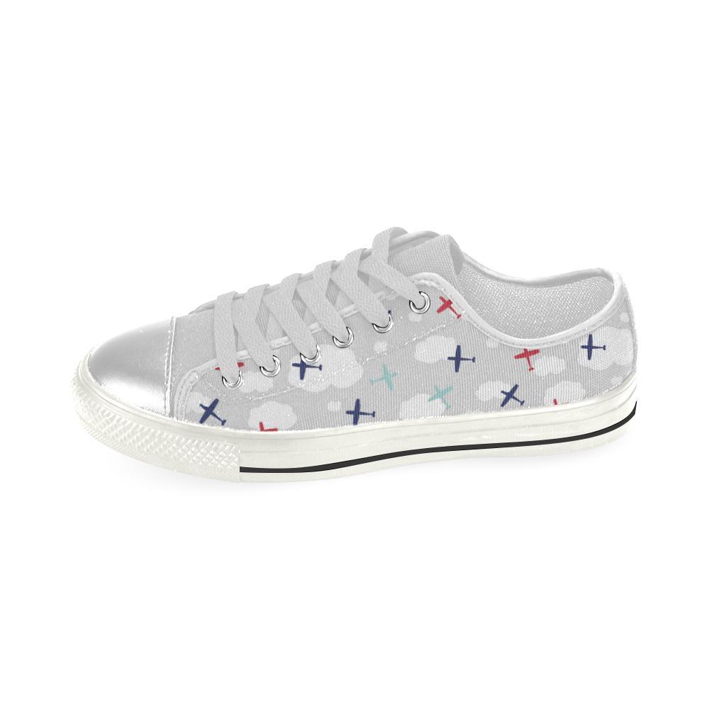 Airplane Cloud Grey Background Kid’S Low Top Canvas Shoes White