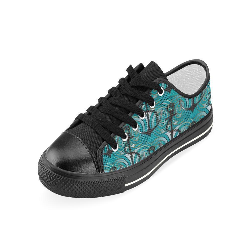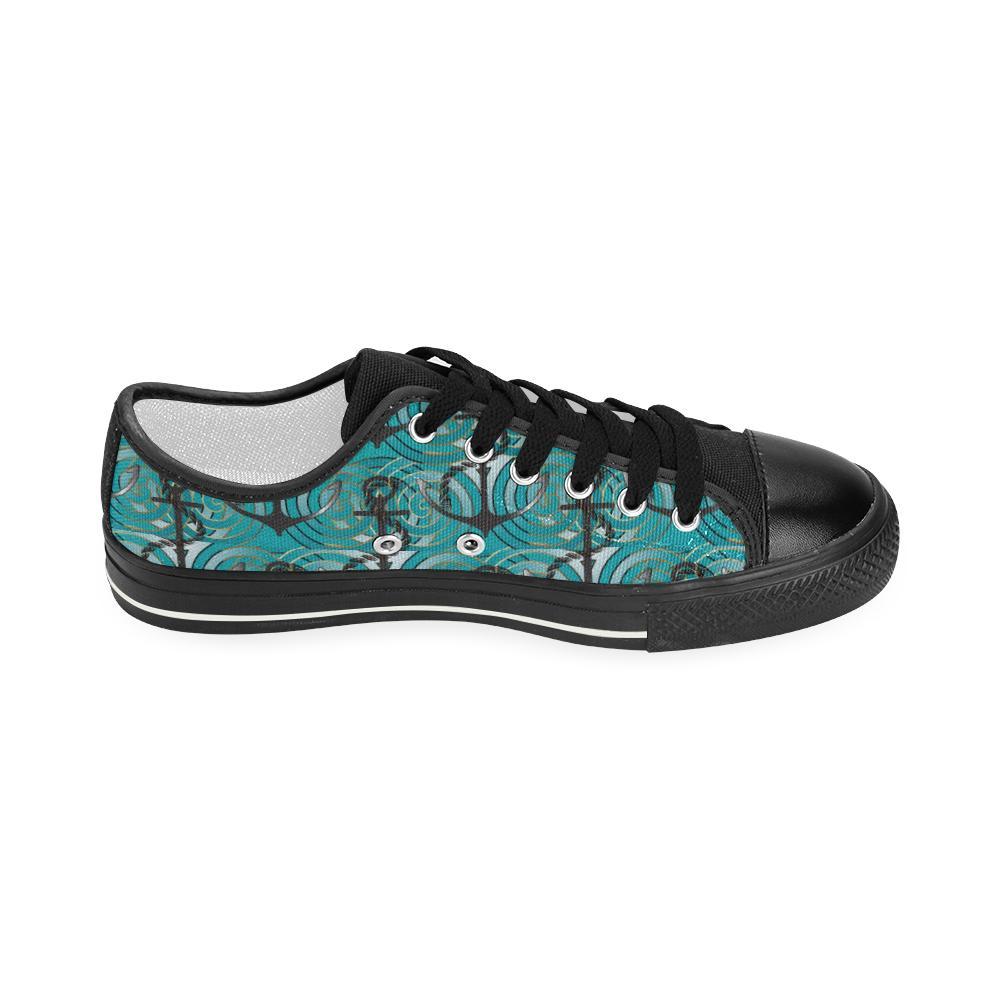 Anchor Nautical Green Background Kid’S Low Top Canvas Shoes Black