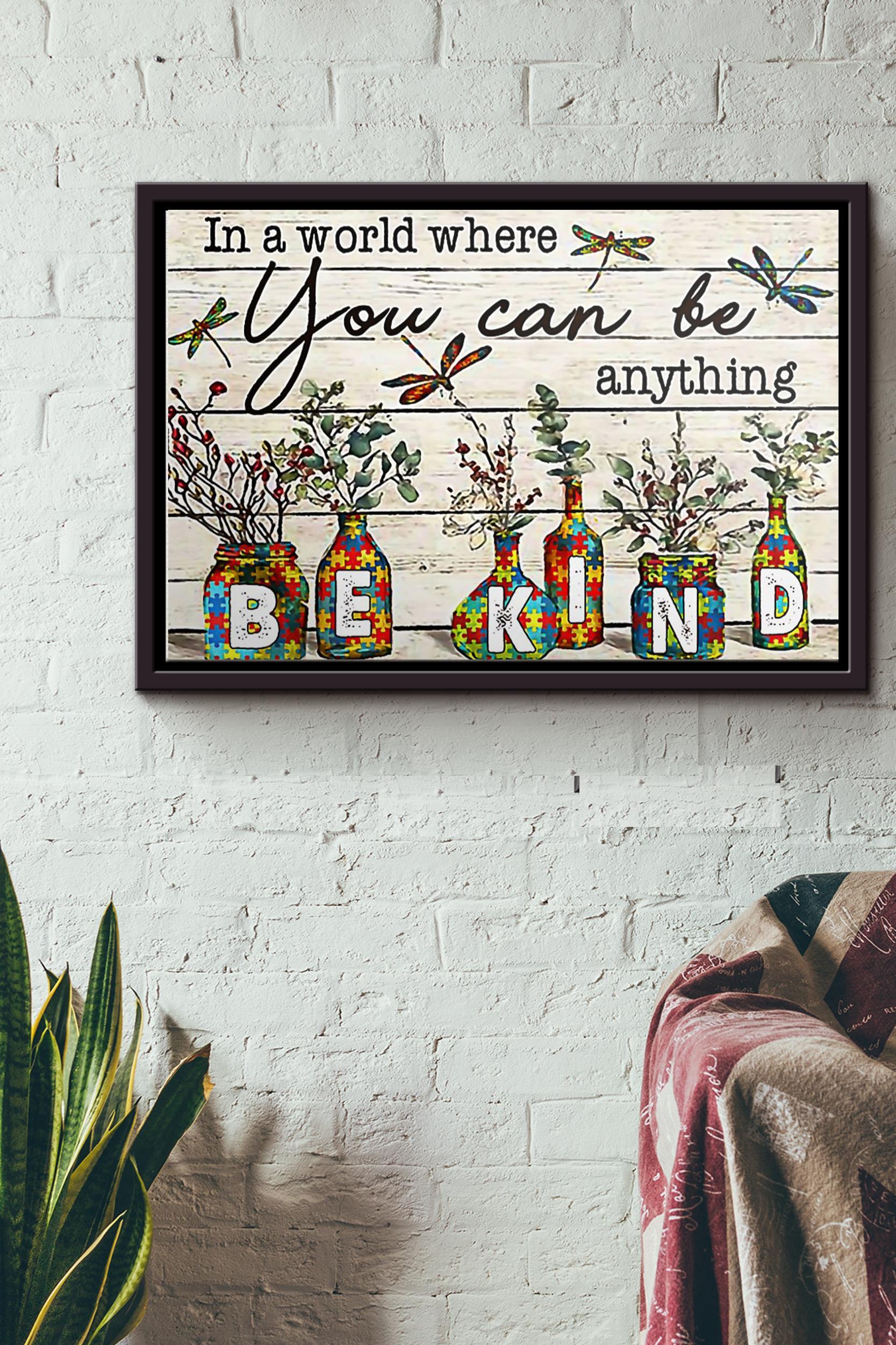 Autism Seasoning In A World Where You Can Be Anything Be Kind Poster N Framed Matte Canvas