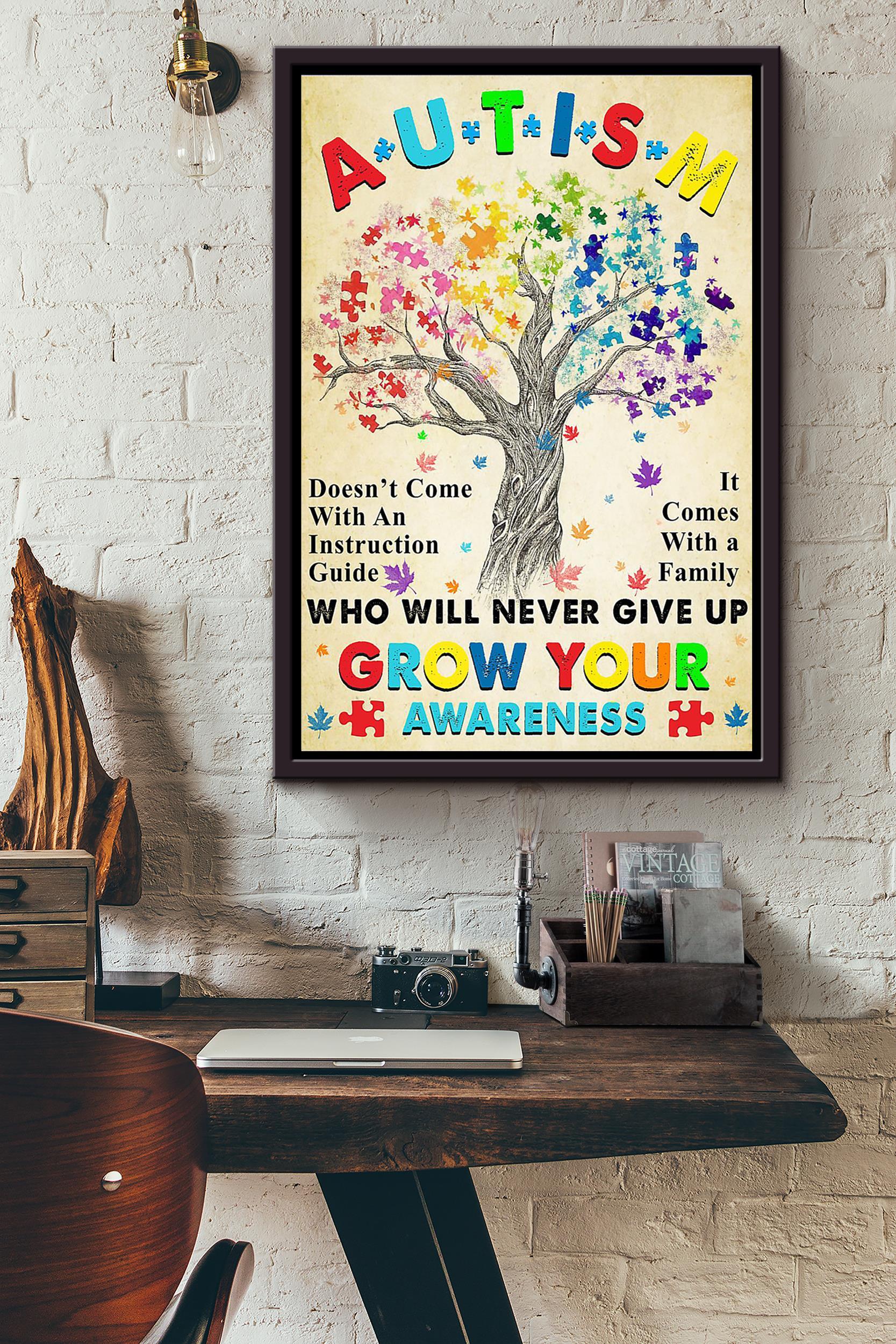 Autism Who Will Never Give Up Grow Your Awareness Poster Framed Matte Canvas