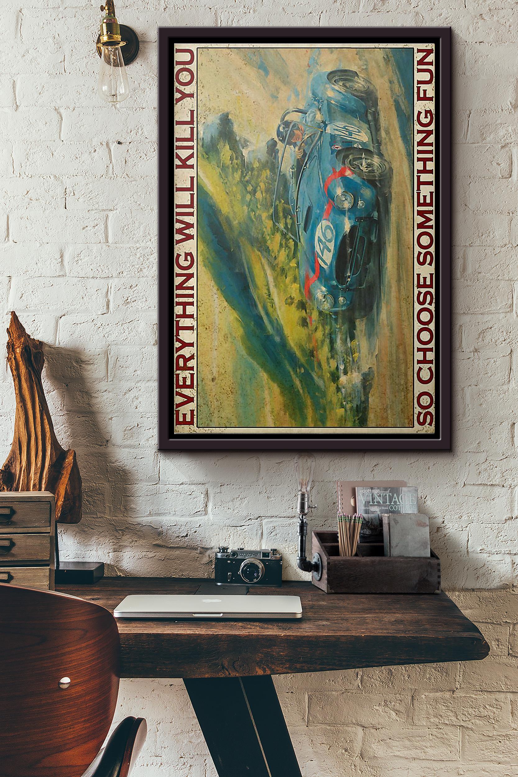 Auto Racing Everything Will Kill You So Choose Something Fun Poster Framed Matte Canvas