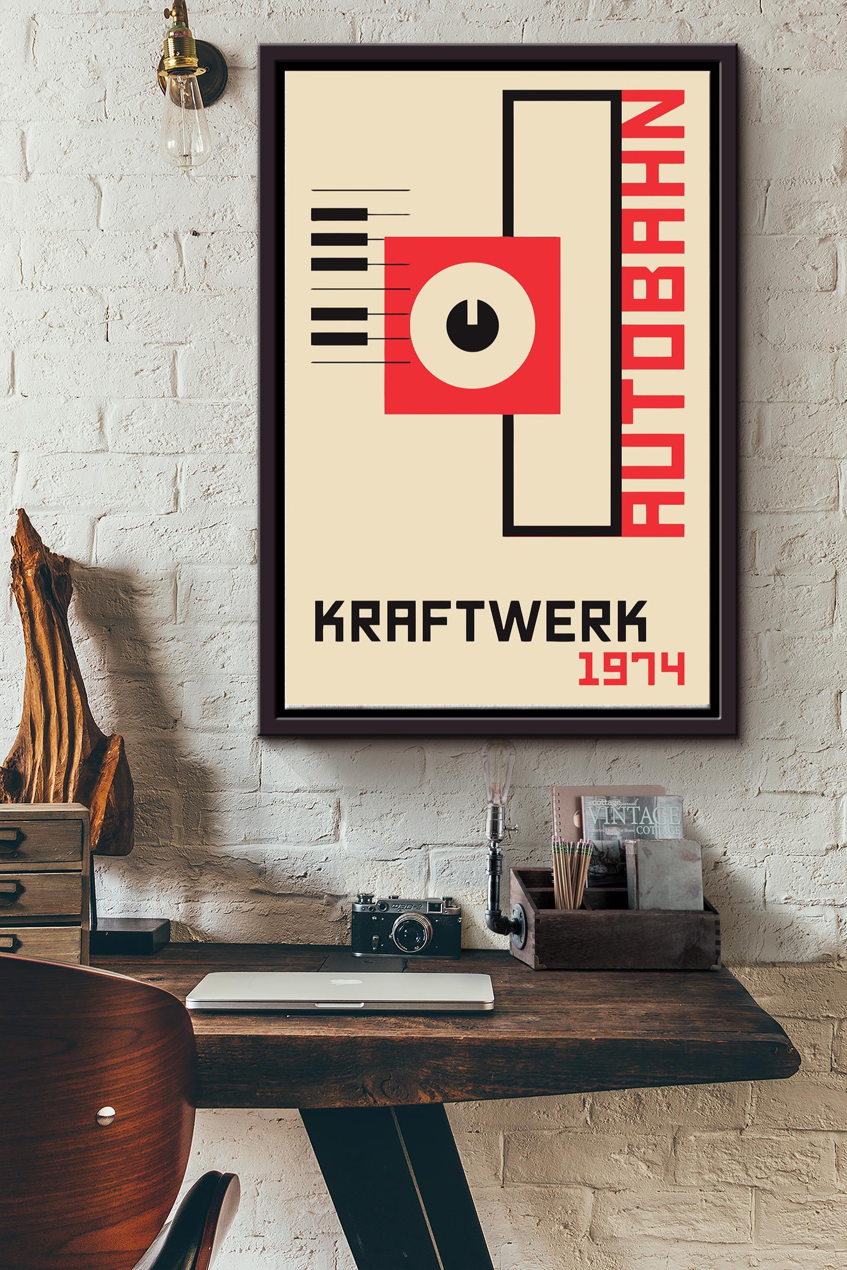 Autobahn Kraftwerk 1974 Poster – Decor Wall Art – Gift For Flatform Train Station Railway Station Tube Station Framed Matte Canvas