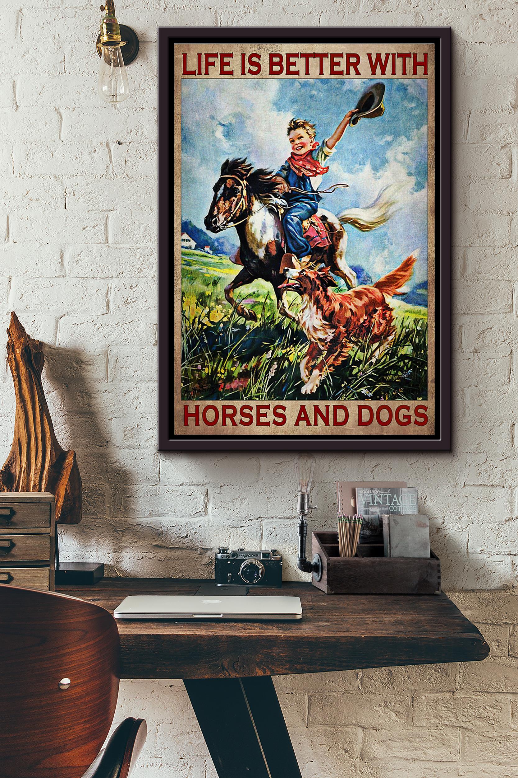 Baby Boy Life Is Better With Horses And Dogs Poster Framed Matte Canvas