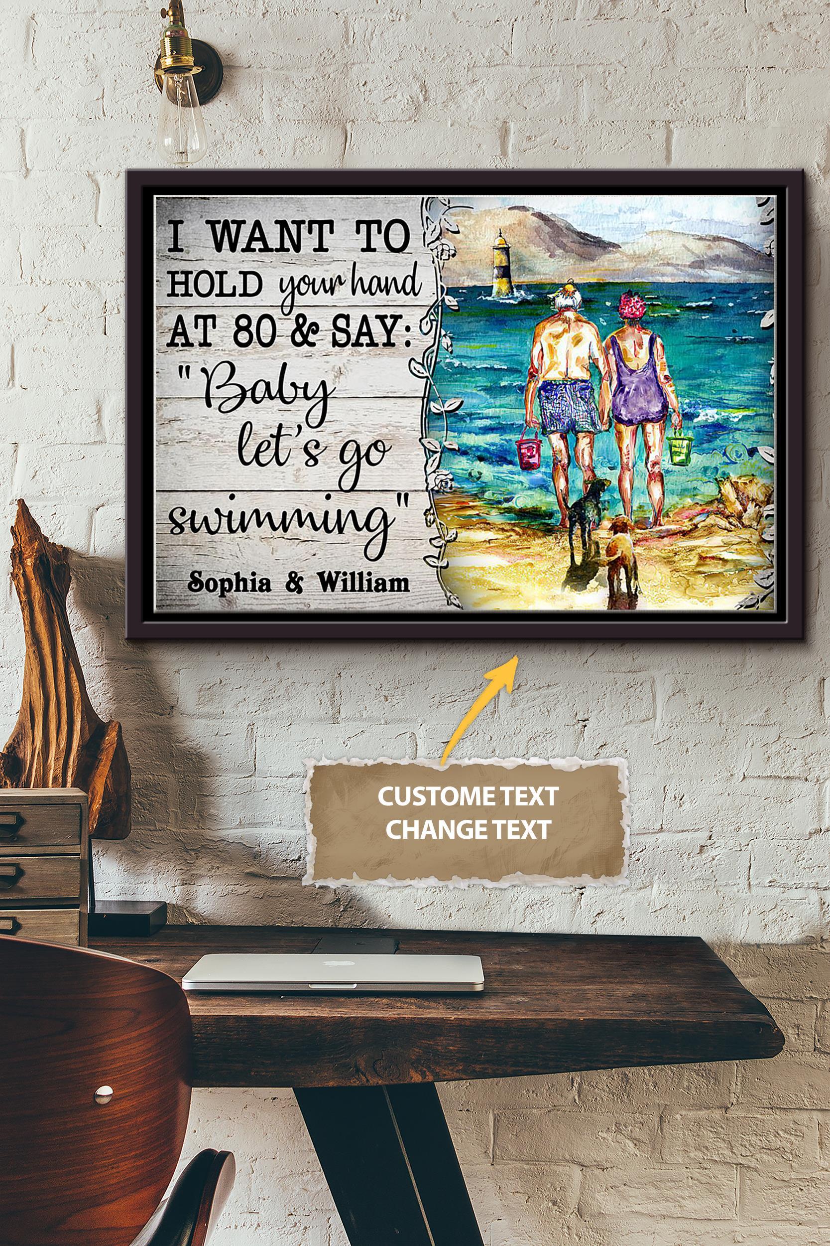 Baby Let’S Go Swimming Personalized Poster – Love Wall Art – Gift For Valentine Day Lover Crush Framed Matte Canvas