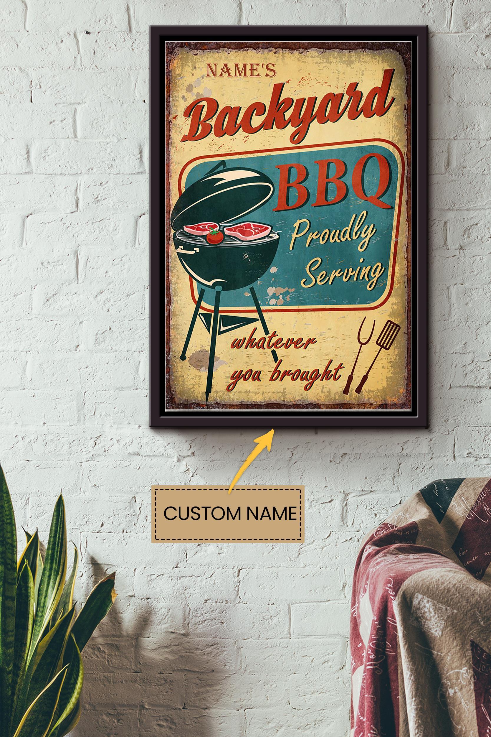 Backyard Bbq Personalized Poster – Decor Wall Art – Gift For Party Decor Bbq Party Decor Homestay Air B&B Framed Matte Canvas