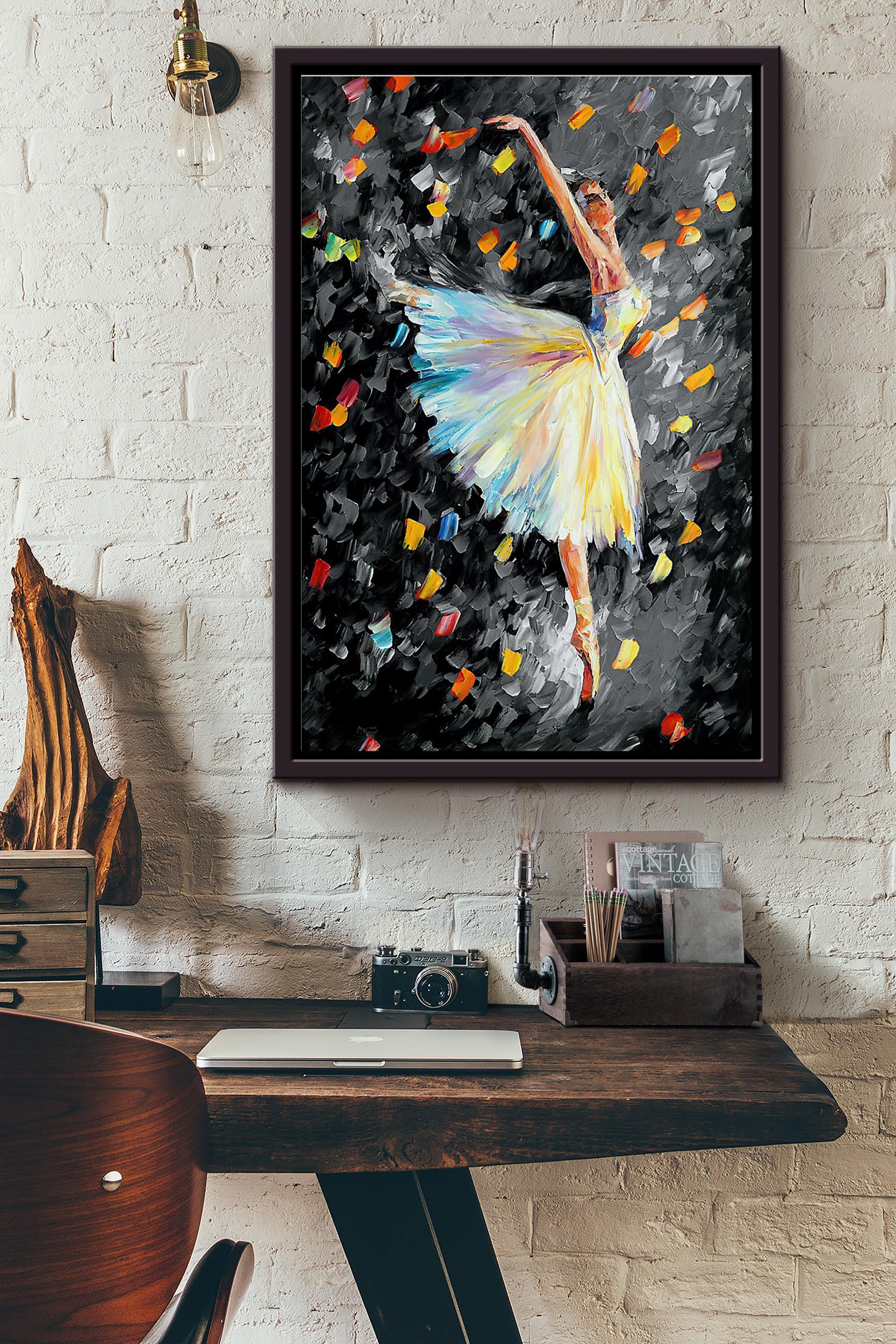 Ballet Girl Fall Leaves Poster Framed Matte Canvas