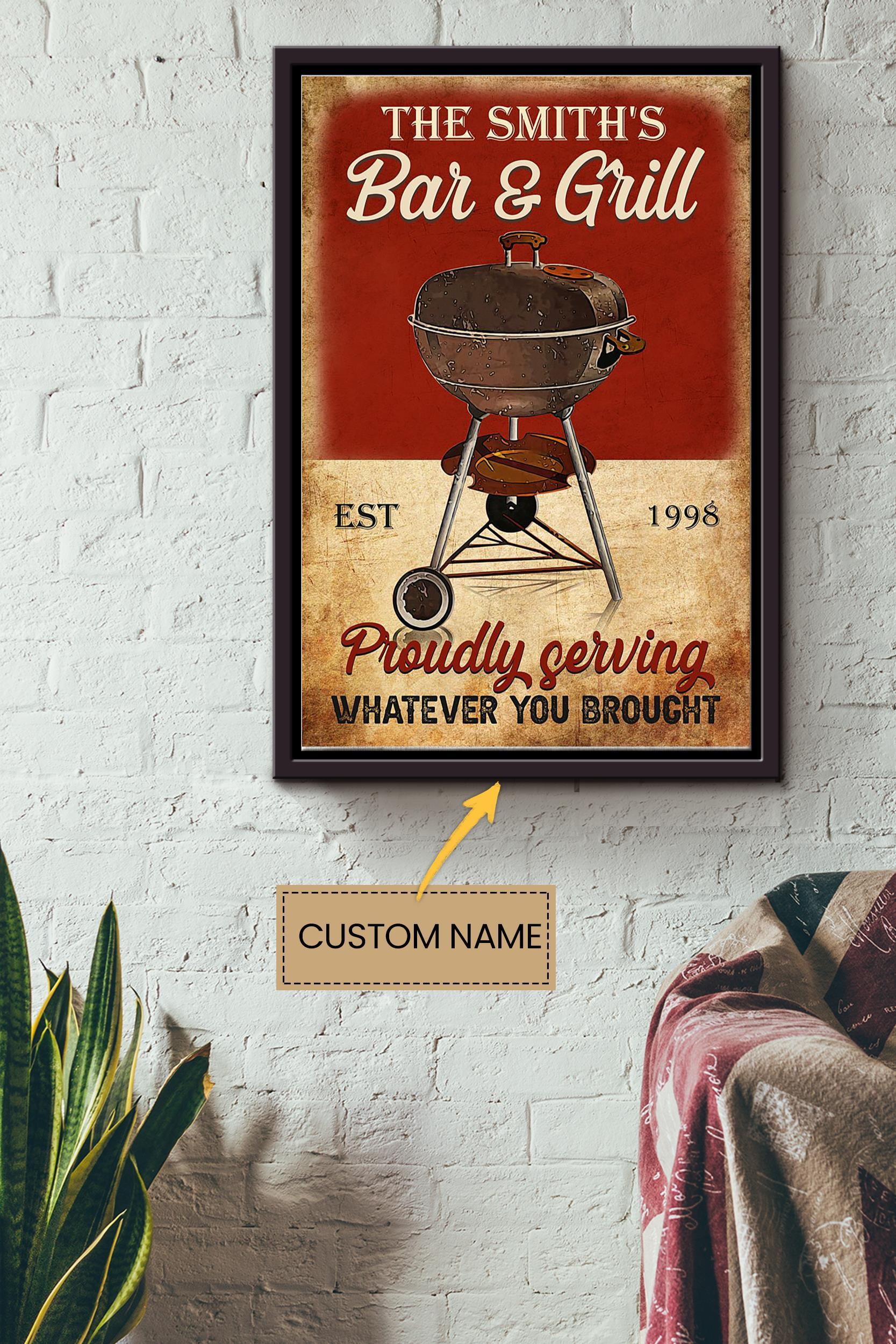 Bar And Grill Personalized Poster – Decor Wall Art – Gift For Bar Decor Bbq Party Decor Party Decor Framed Matte Canvas