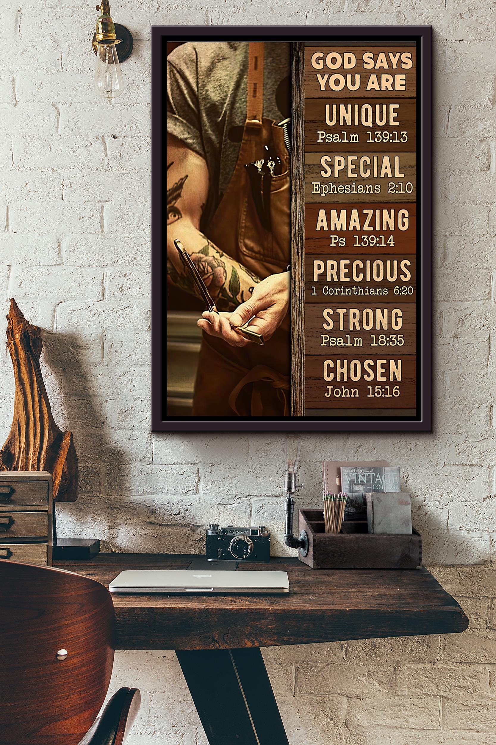 Barber God Says You Are Unique Special Amazing Strong Chosen Poster Framed Matte Canvas