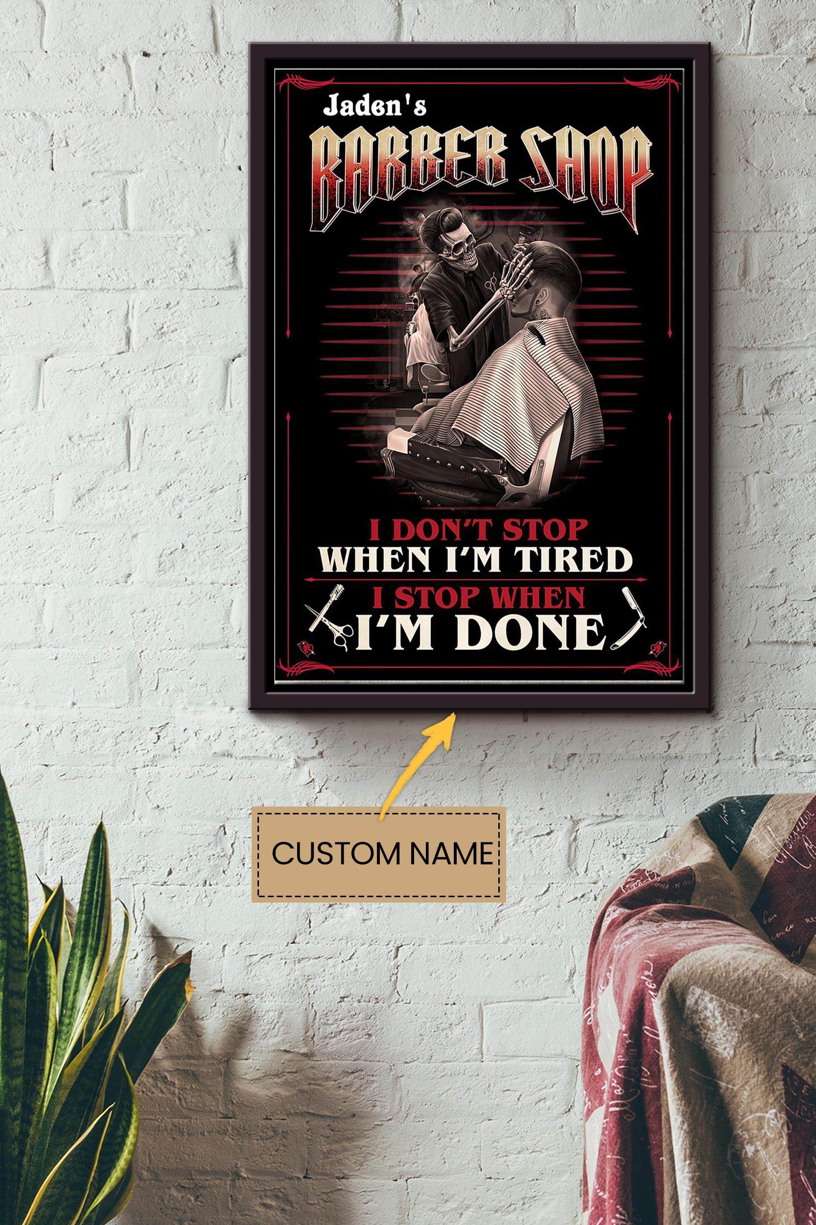 Barber Shop I Dont Stop When I Tired I Stop When Im Done Personalized Poster – Decor Wall Art – Gift For Barber Decor Hairdresser Framed Matte Canvas