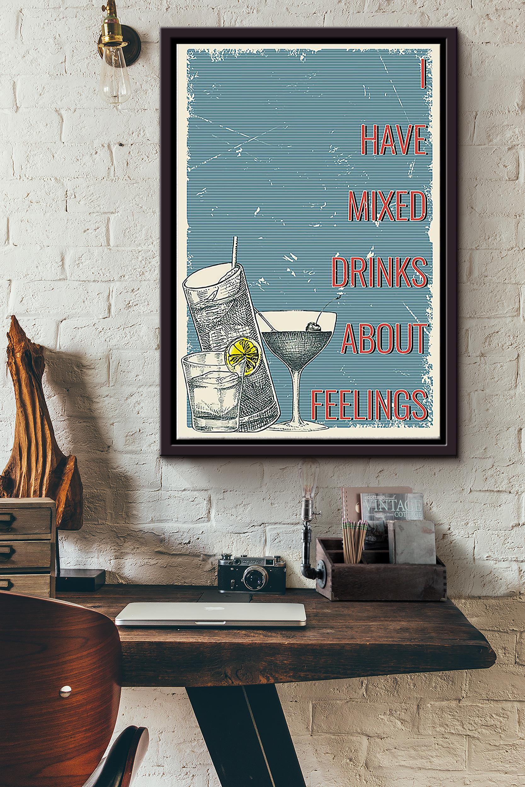 Bartender I Have Mixed Drinks About Feeling Text Poster – Decor Wall Art Canvas – Gift For Men Women Wine Lover Tattoo Lover Cocktail Lover Bar Lover Bar Decor Pub Decor Club Decor Framed Matte Canvas