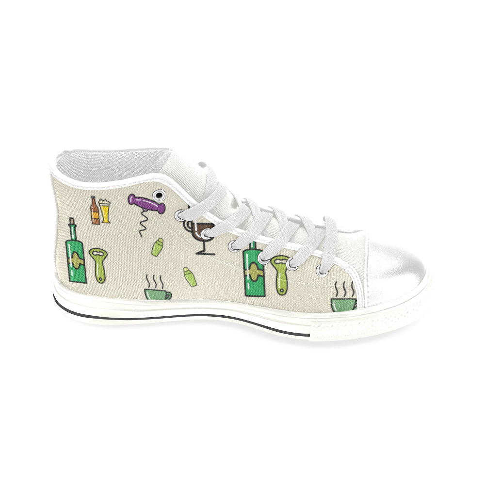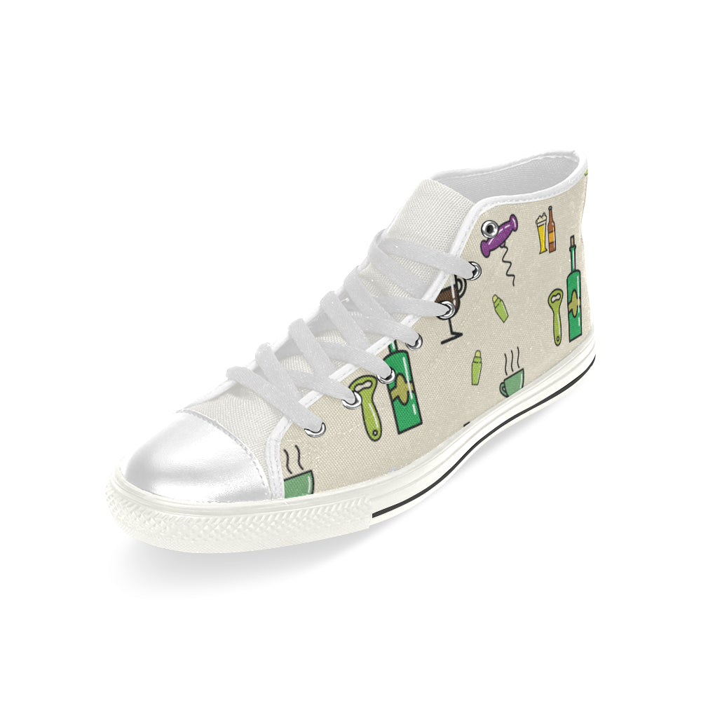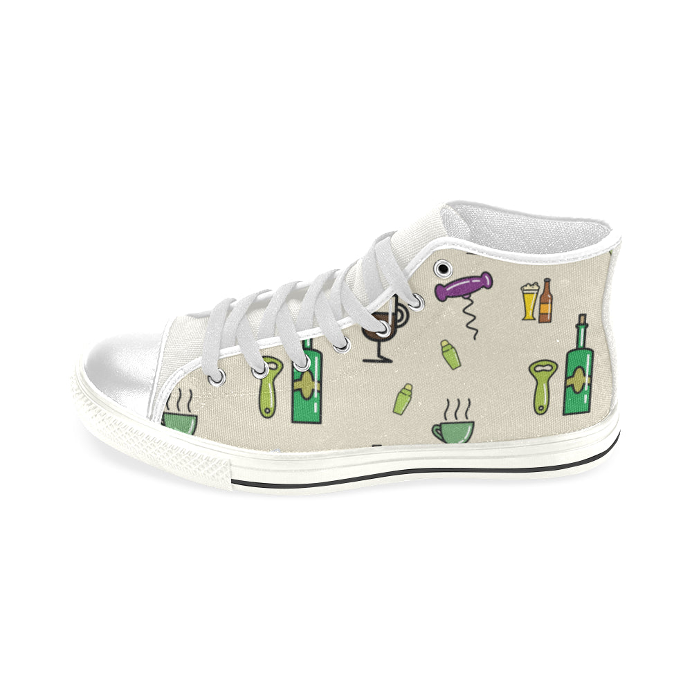 Bartender Pattern White Men’s Classic High Top Canvas Shoes