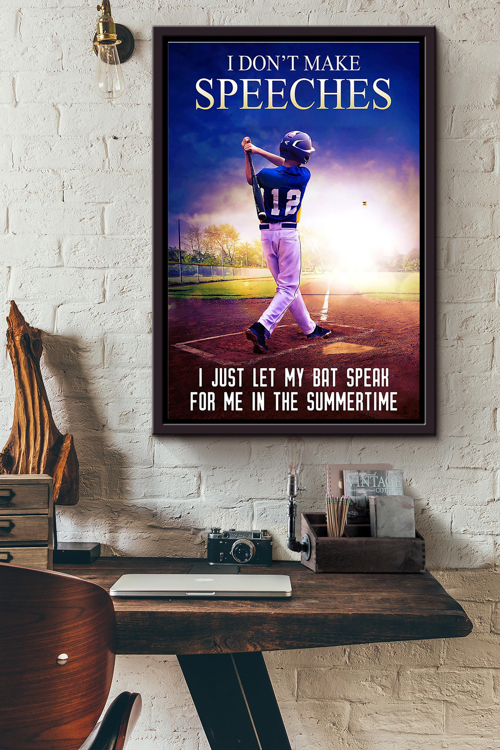 Baseball Player I Dont Make Speeches I Just Let My Bat Speak For Me In The Summertime Poster Framed Matte Canvas