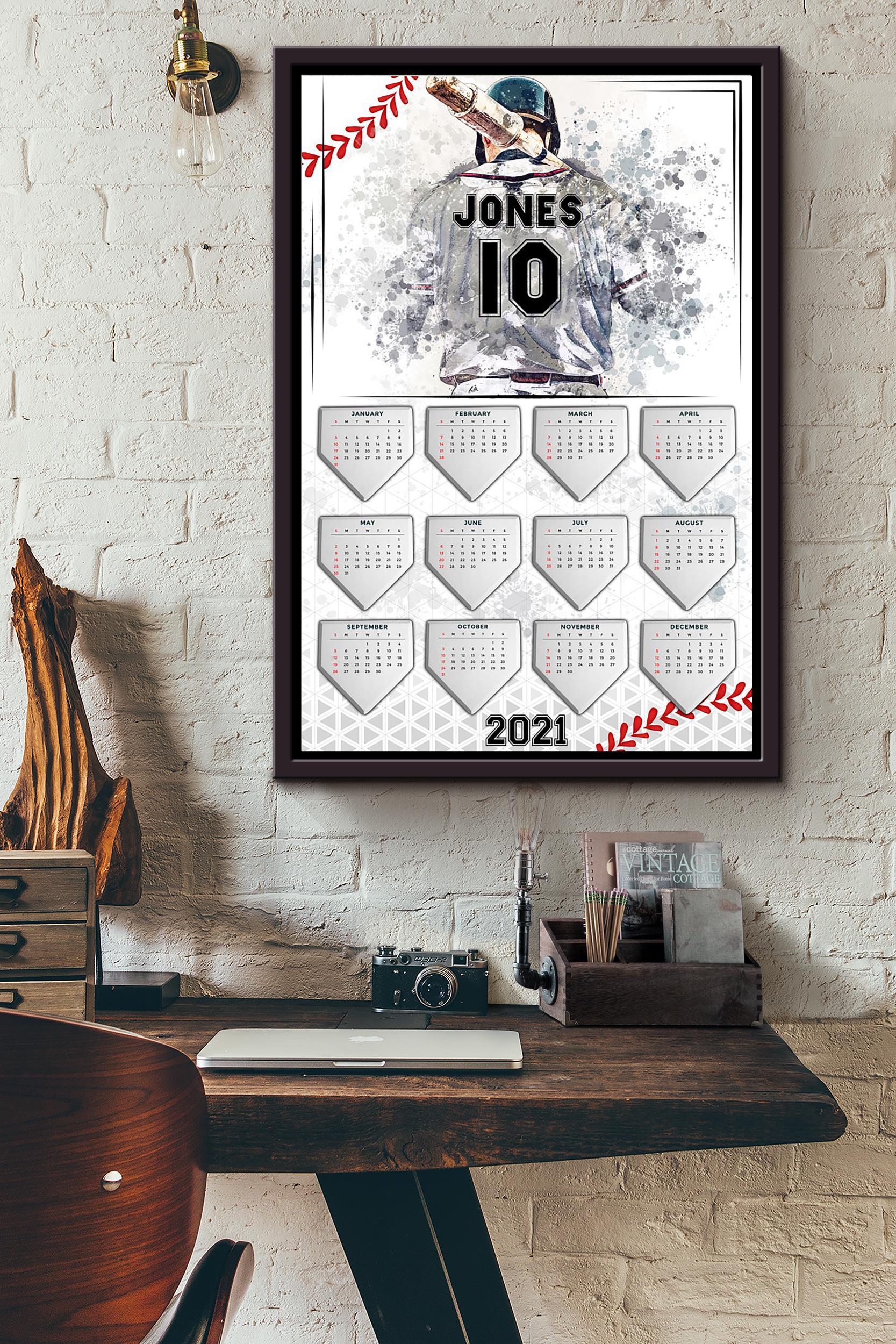 Baseball Players Calendar 2021 Poster Framed Matte Canvas