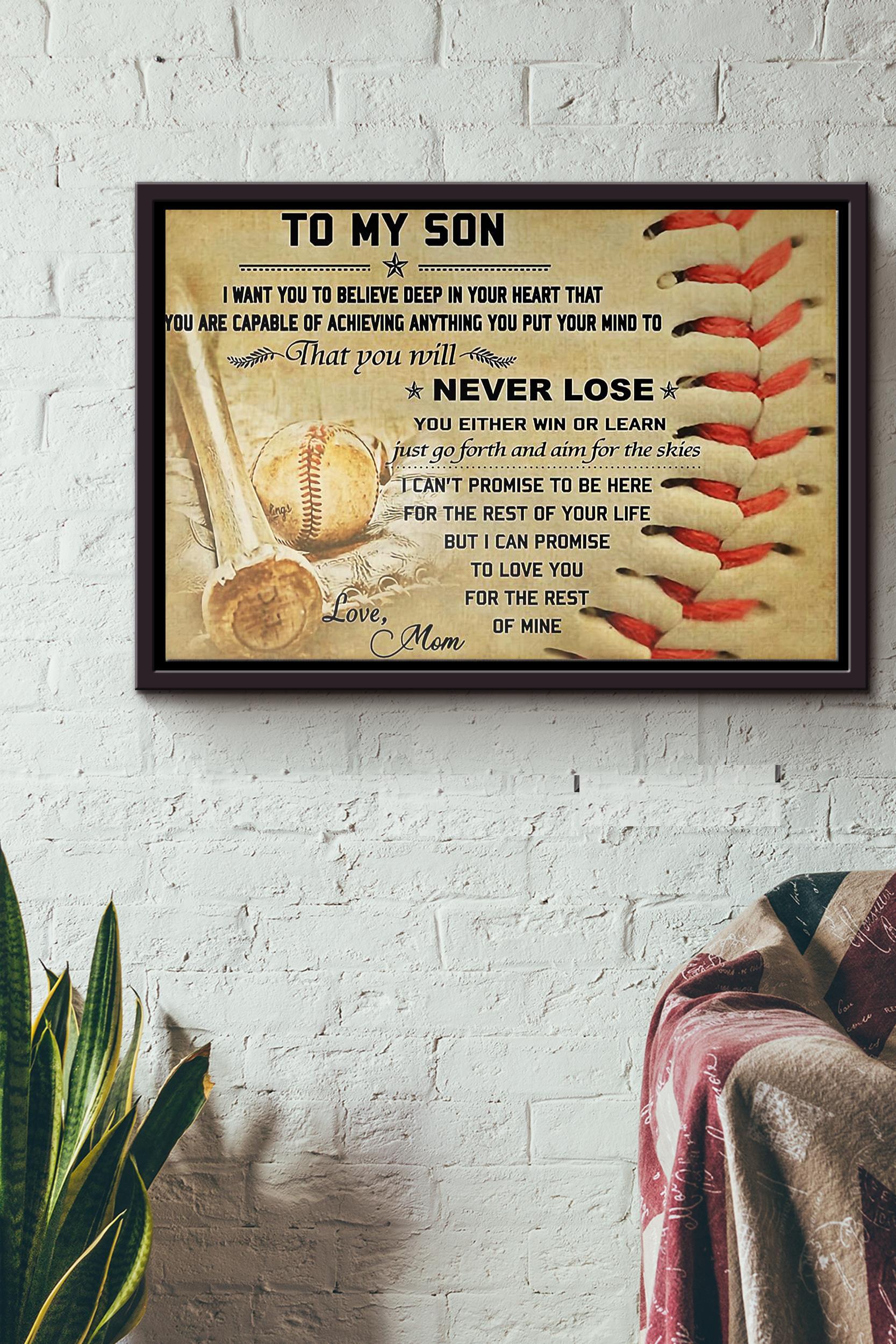 Baseball To My Son Love Mom Poster N Framed Matte Canvas