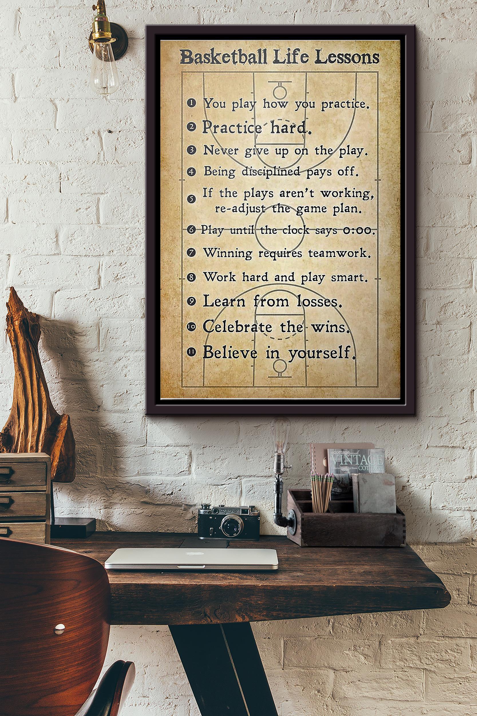 Basketball Life Lessons You Play How You Pratice Poster Framed Matte Canvas