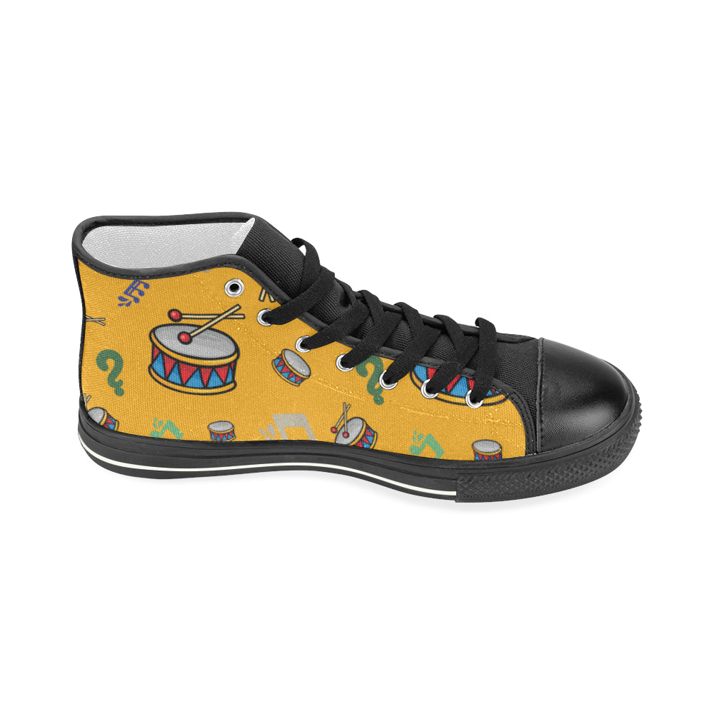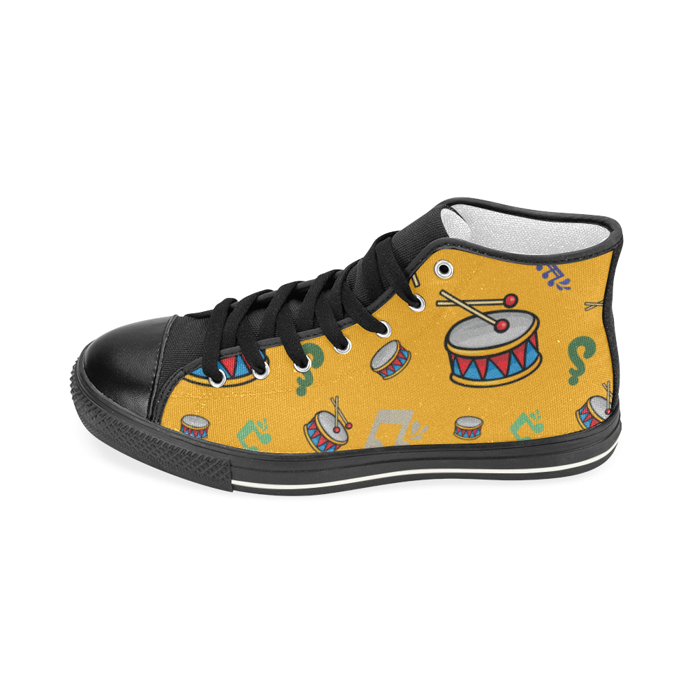 Bass Drum Pattern Black Women’s Classic High Top Canvas Shoes