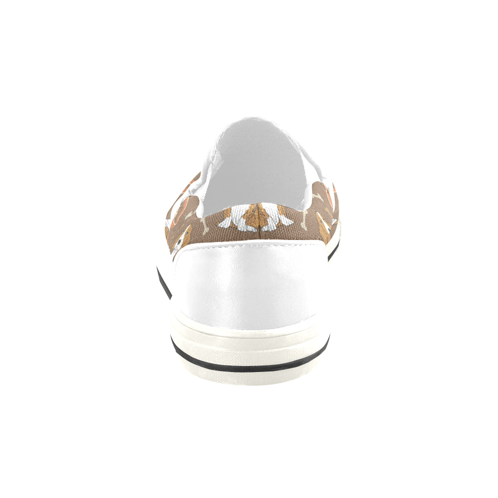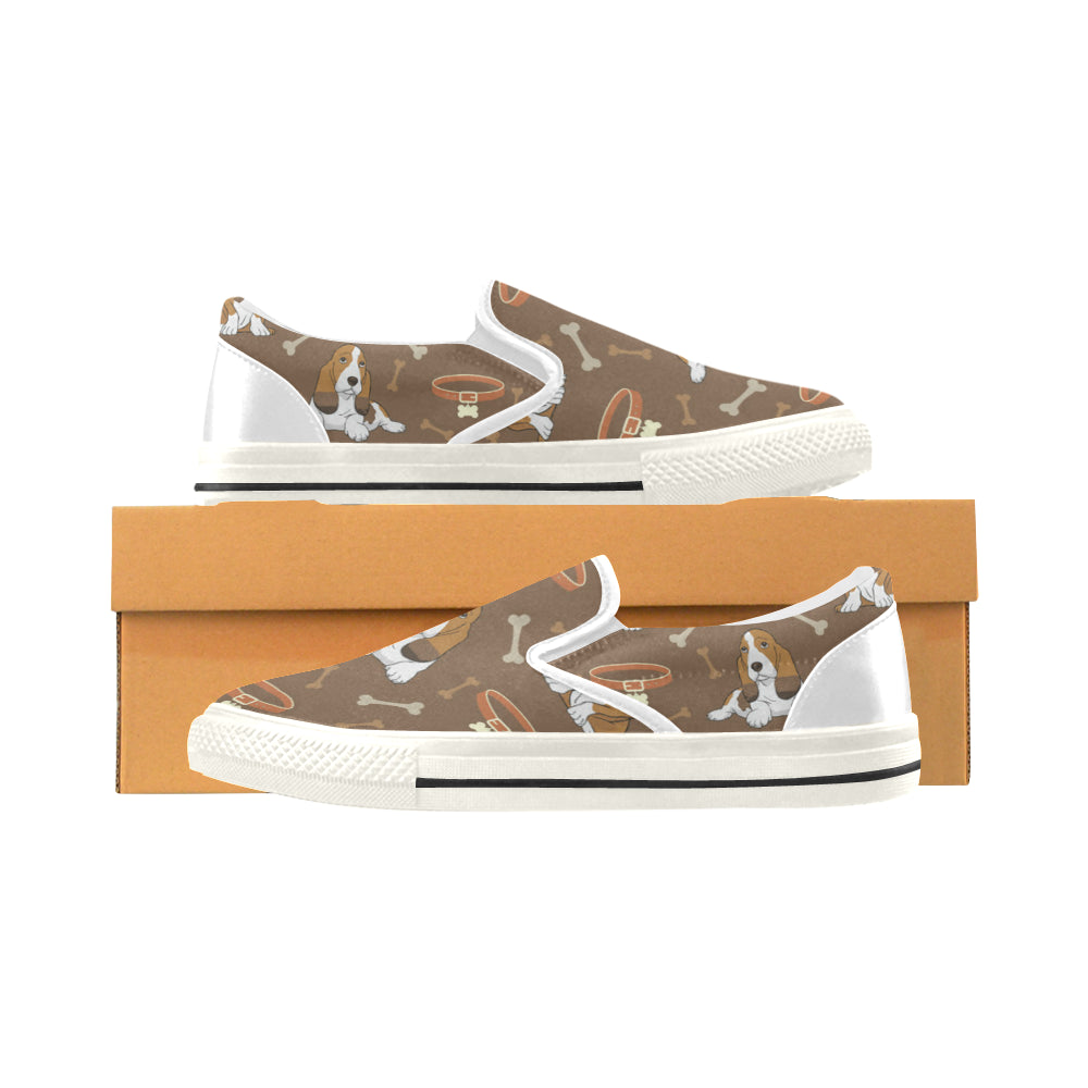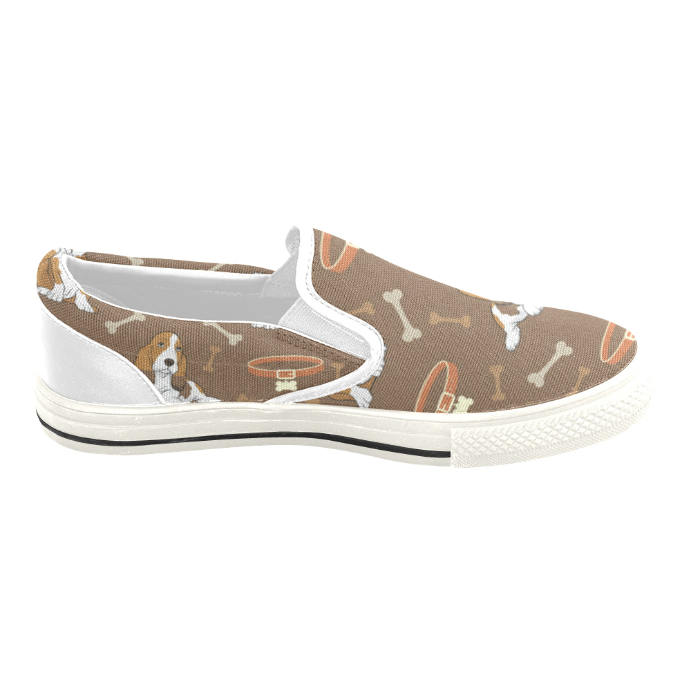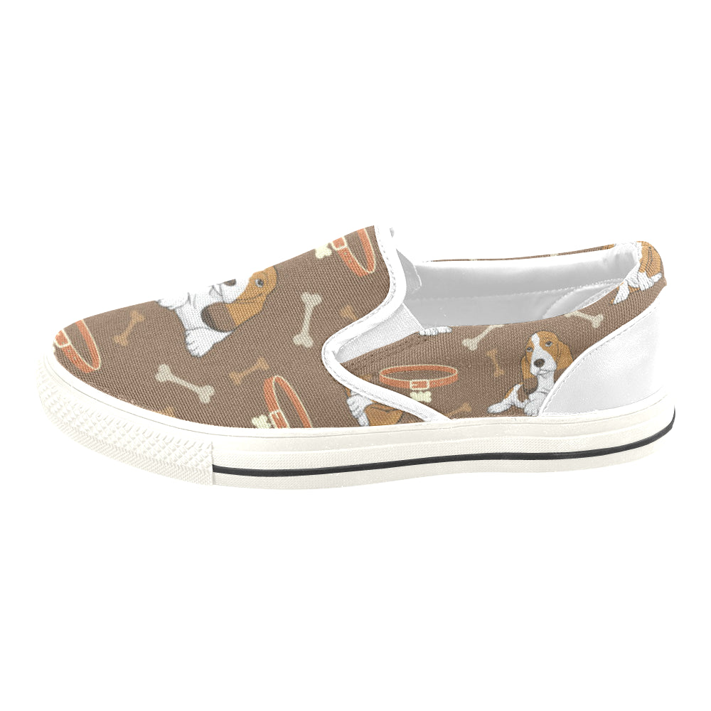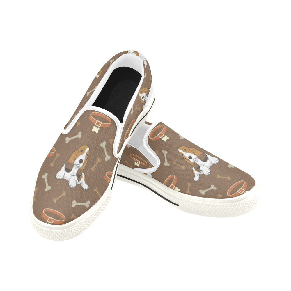 Basset Fauve White Women’s Slip-on Canvas Shoes/Large Size (Model 019)