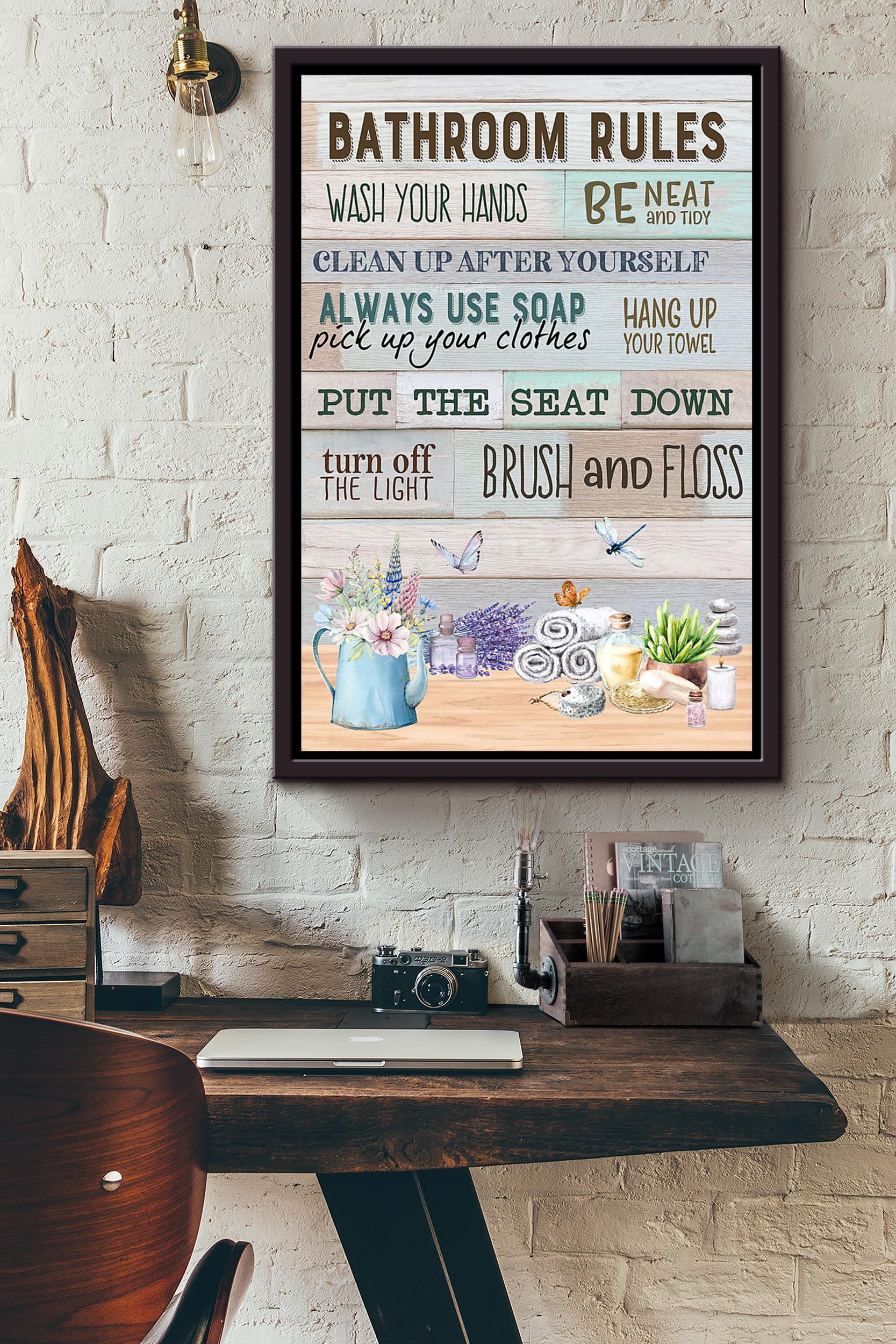 Bathroom Rules Brush And Floss Poster Framed Matte Canvas