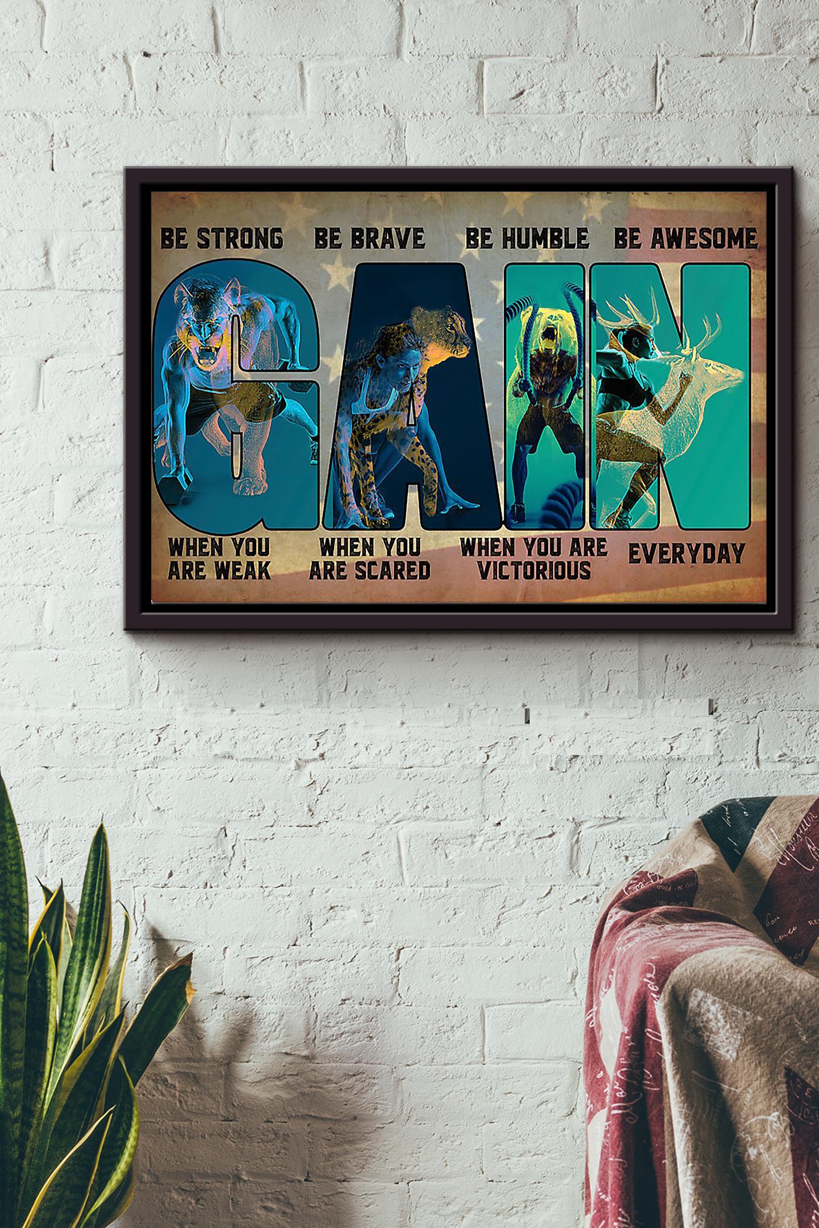 Be Strong Be Brave Be Humble Be Awesome Work Out Gym Poster N Framed Matte Canvas