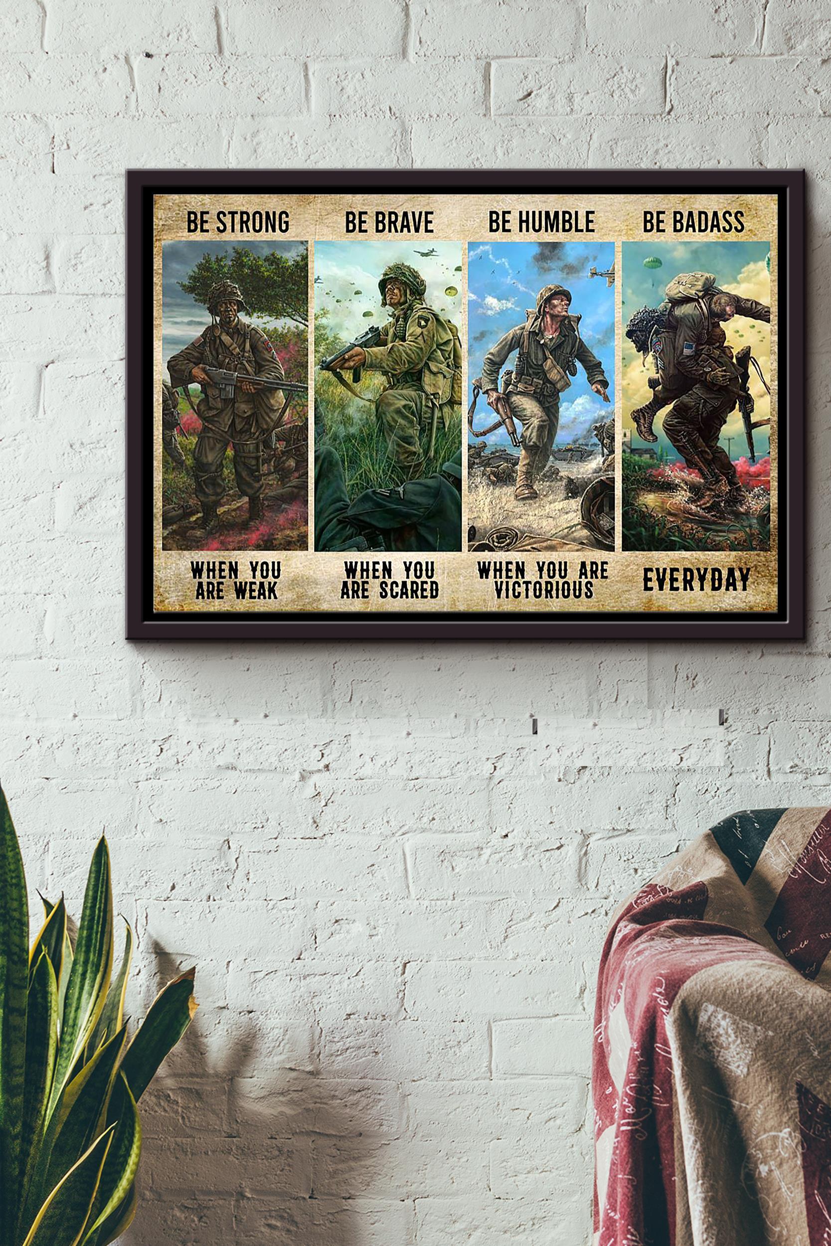 Be Strong Be Brave Be Humble Be Badass Veteran Poster N Framed Matte Canvas