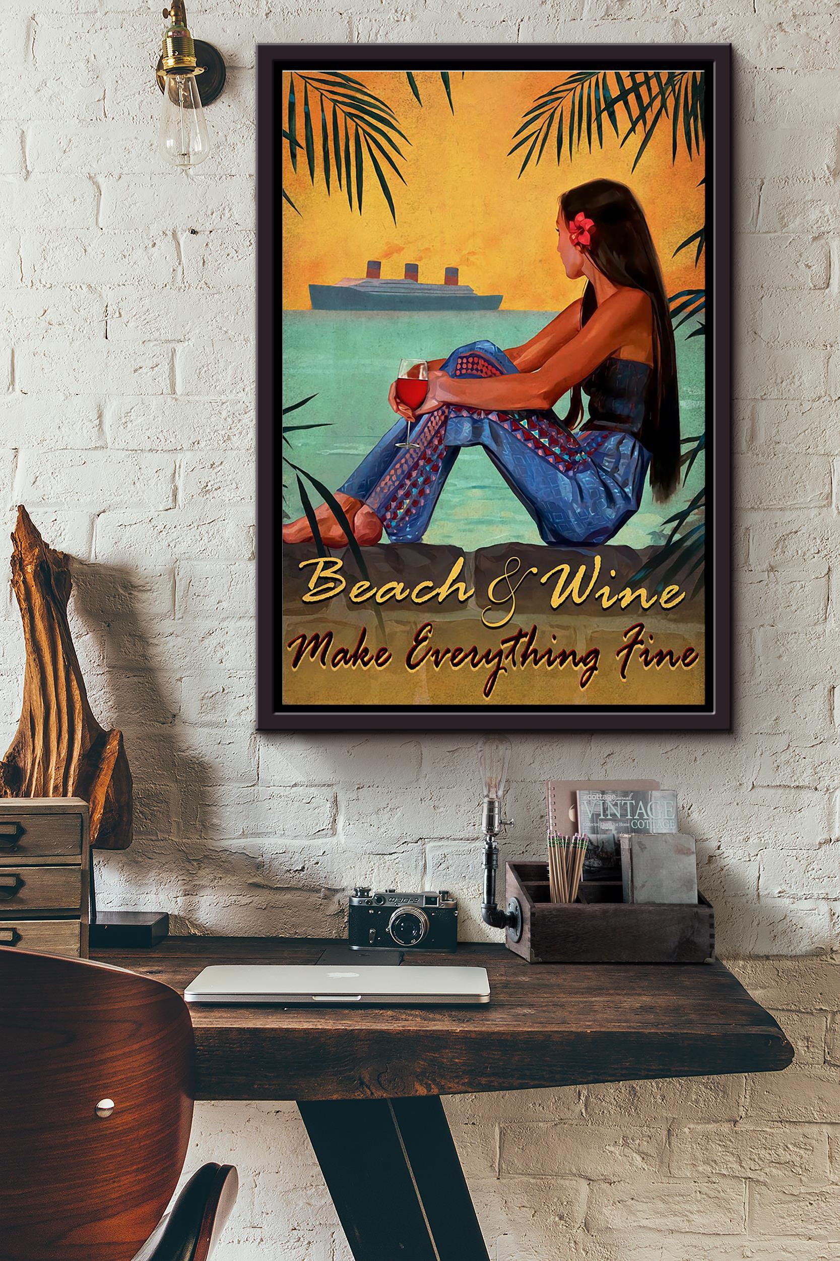 Beach And Red Wine Make Everything Fine Poster Framed Matte Canvas