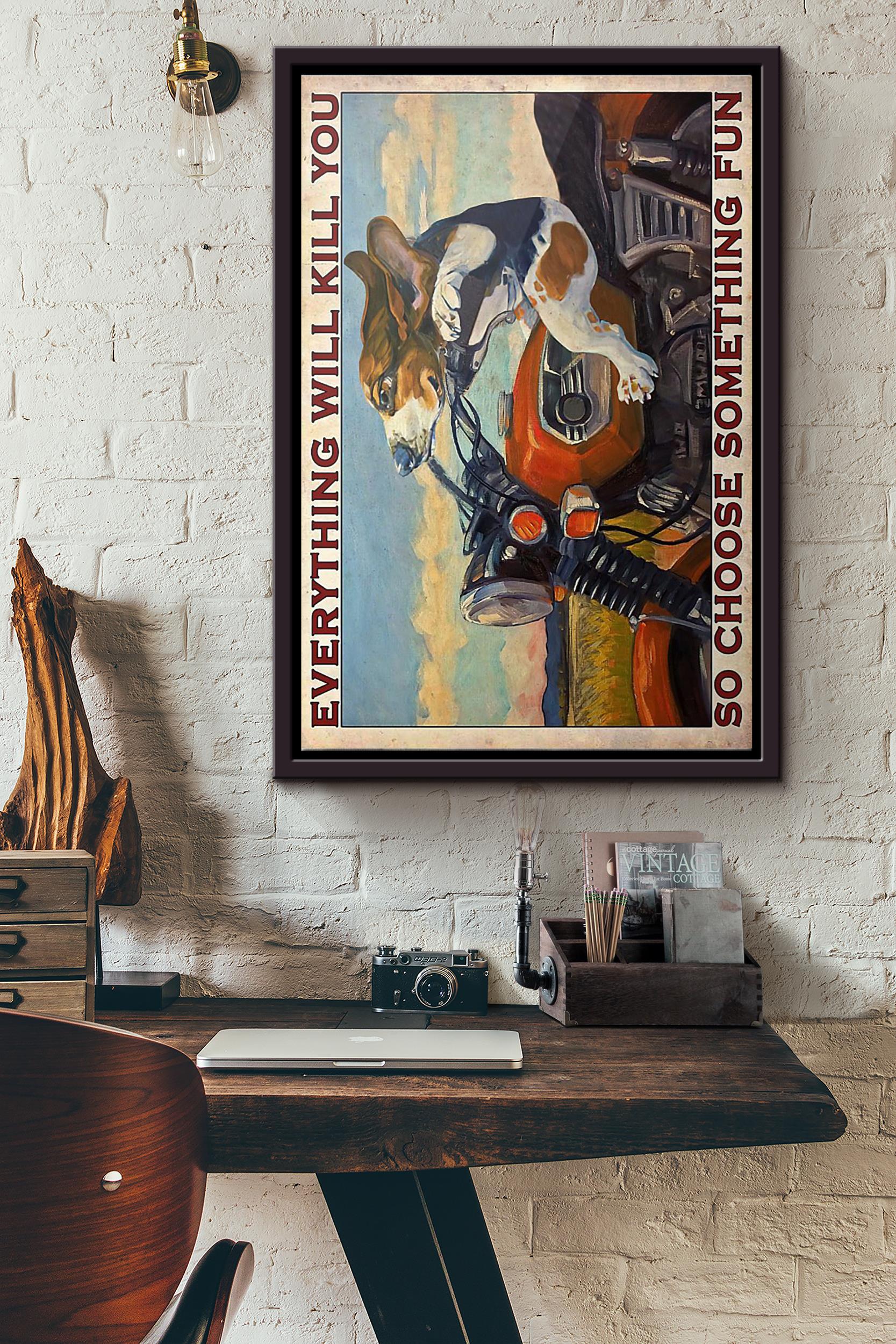 Beagle Motorcycle Everything Will Kill You So Choose Something Fun Poster Framed Matte Canvas