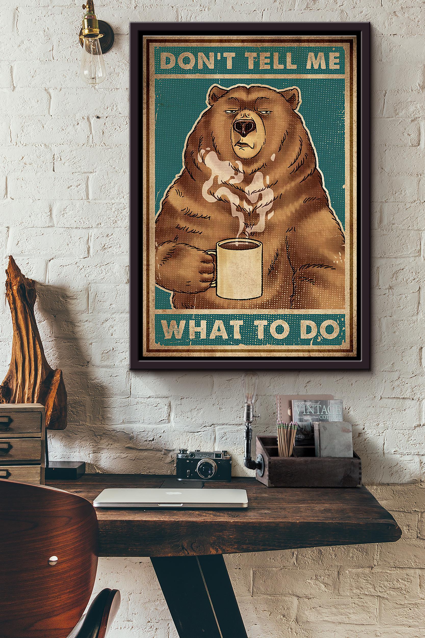 Bear Drinking Coffee Dont Tell Me What To Do Poster Framed Matte Canvas