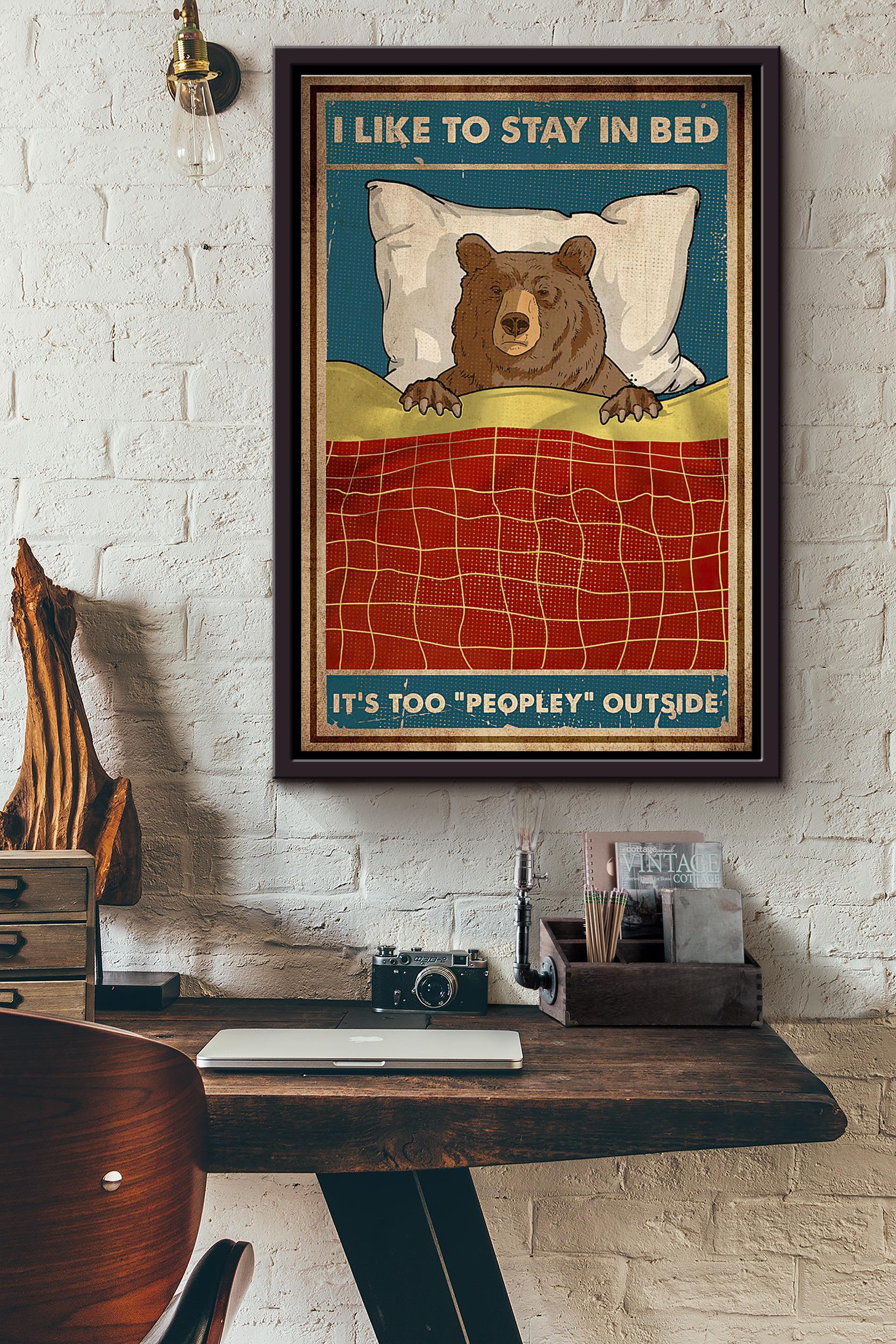 Bear I Like To Stay In Bed Its Too Peopley Outisde Poster Framed Matte Canvas