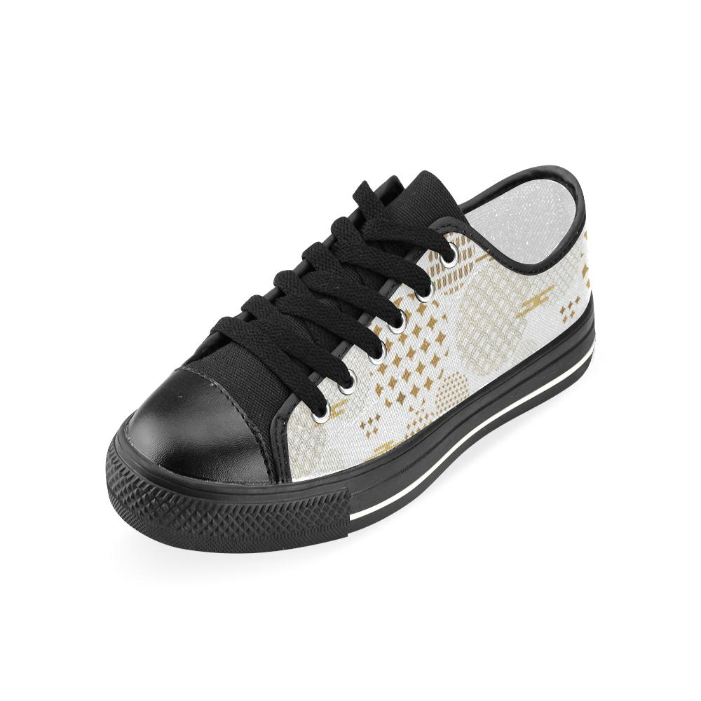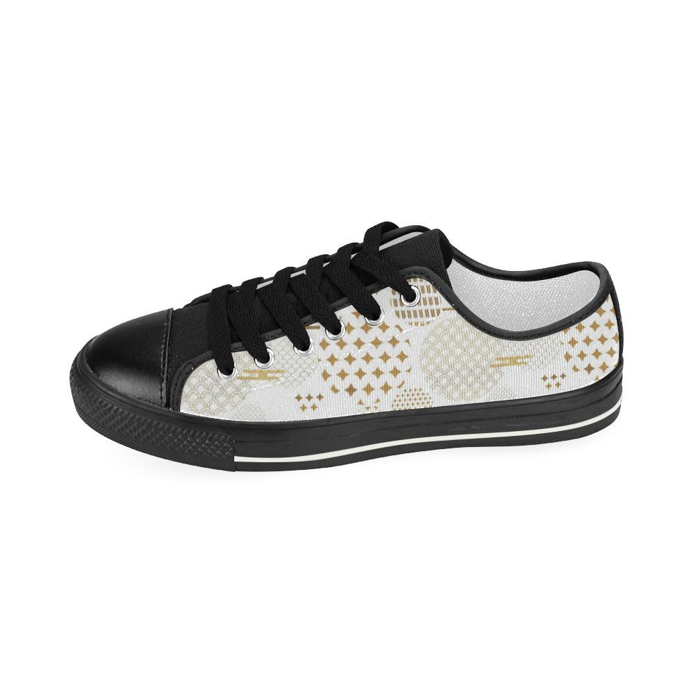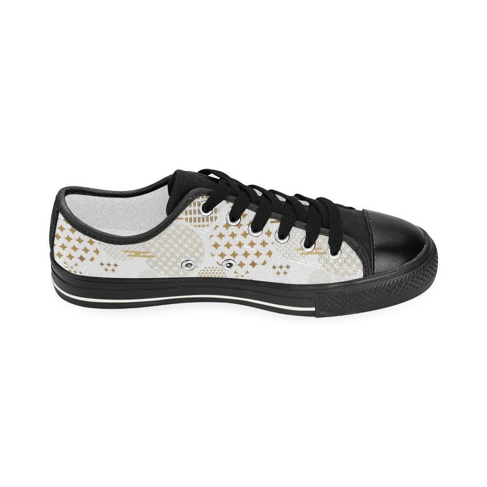 Beautiful Gold Japanese Pattern Kid’S Low Top Canvas Shoes Black