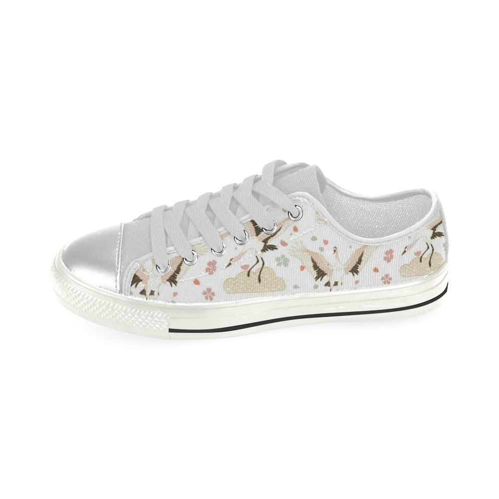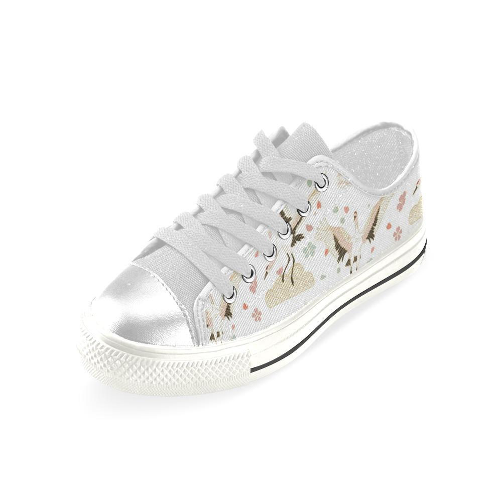 Beautiful Japanese Cranes Pattern Kid’S Low Top Canvas Shoes White