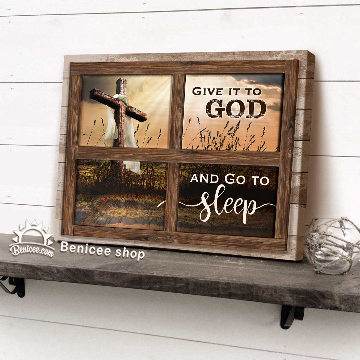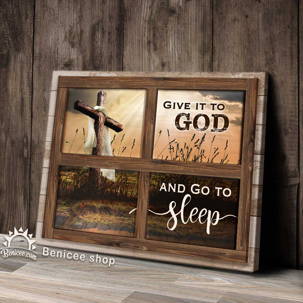 Bedroom Decor Wall Art Canvas Give It To God And Go To Sleep Rugged Cross
