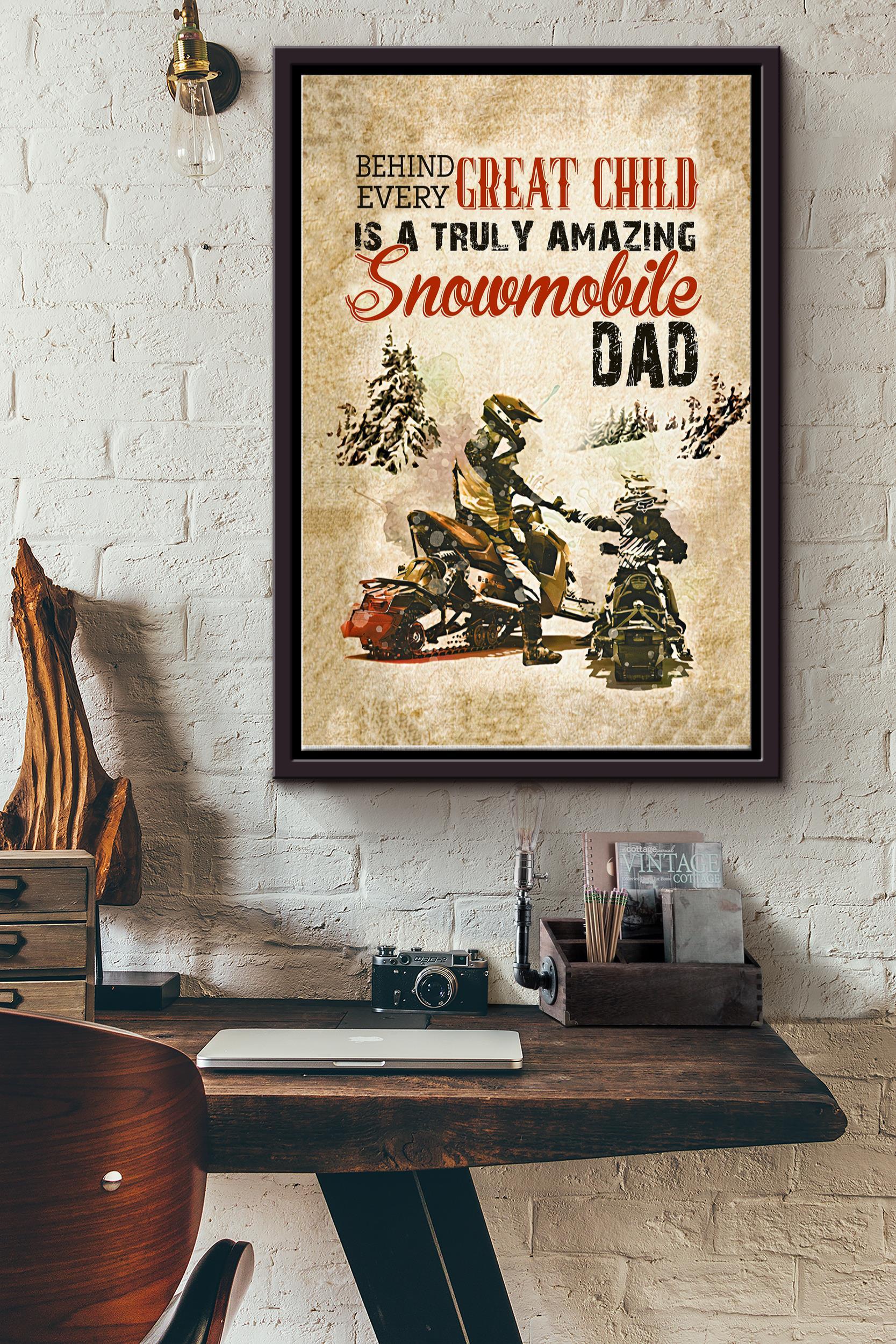 Behind Every Great Child Is A Truly Amaizing Snowmobile Dad Poster – Fatherhood Wall Art – Gift For Dad Father Fatherday Papa Daddy Racer Motorbiker Framed Matte Canvas