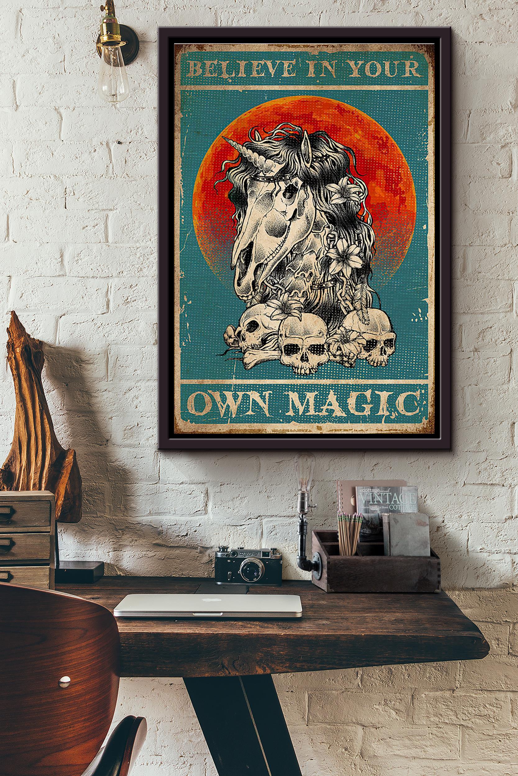 Believe In Your Own Magic Unicorn Skull Poster Framed Matte Canvas