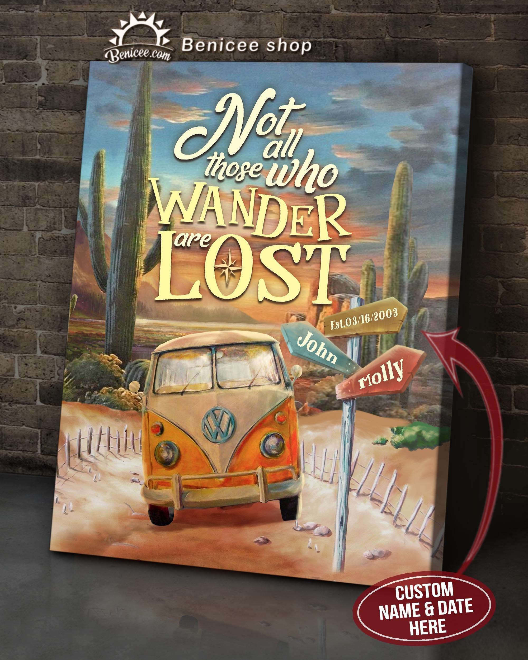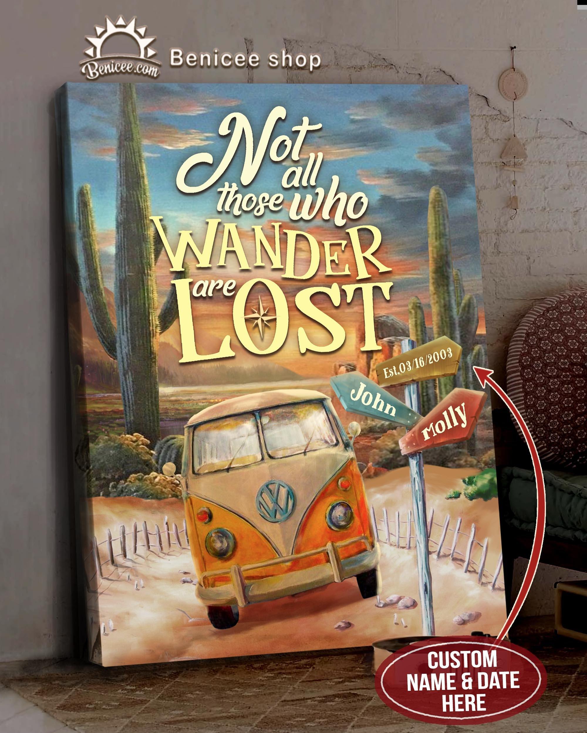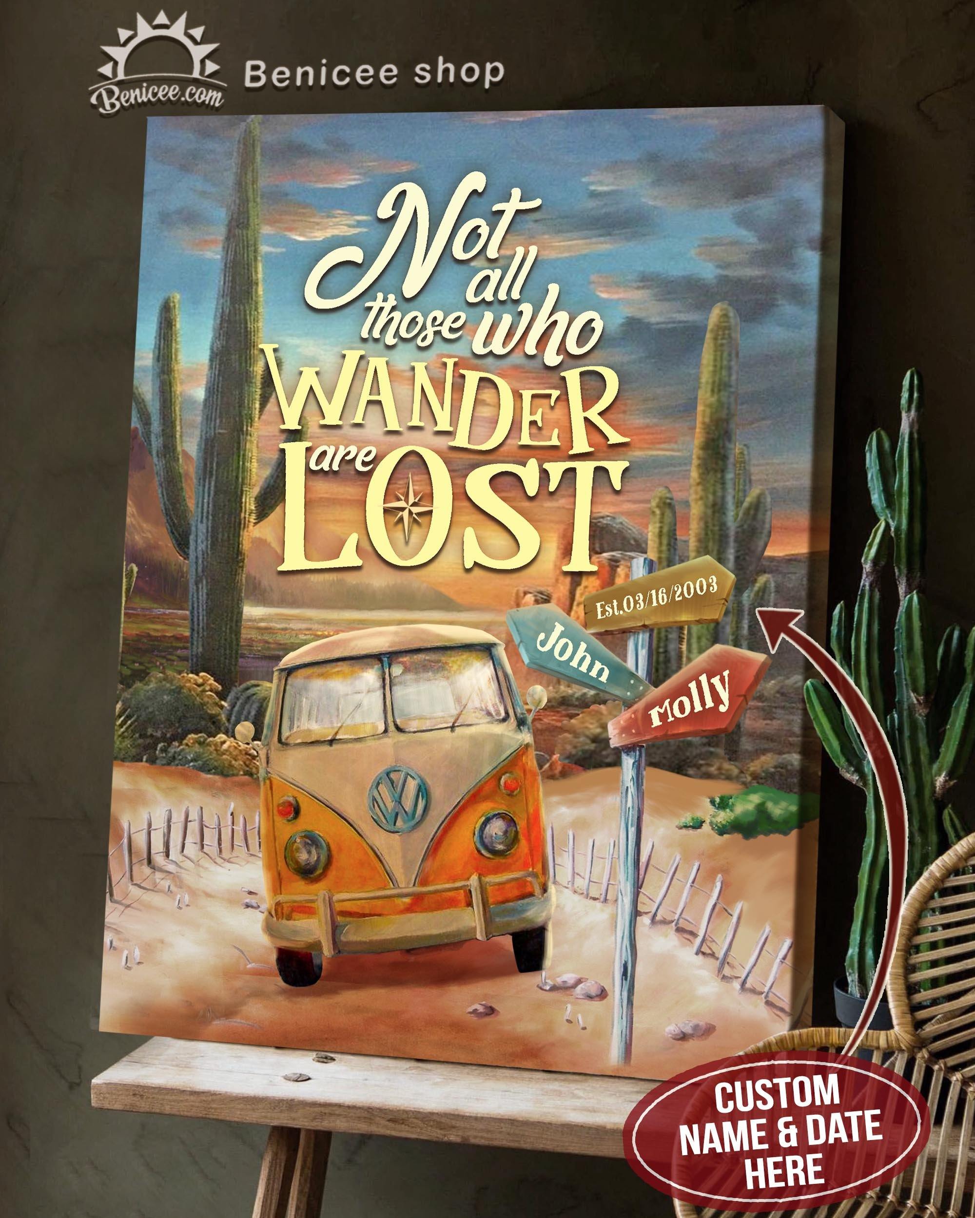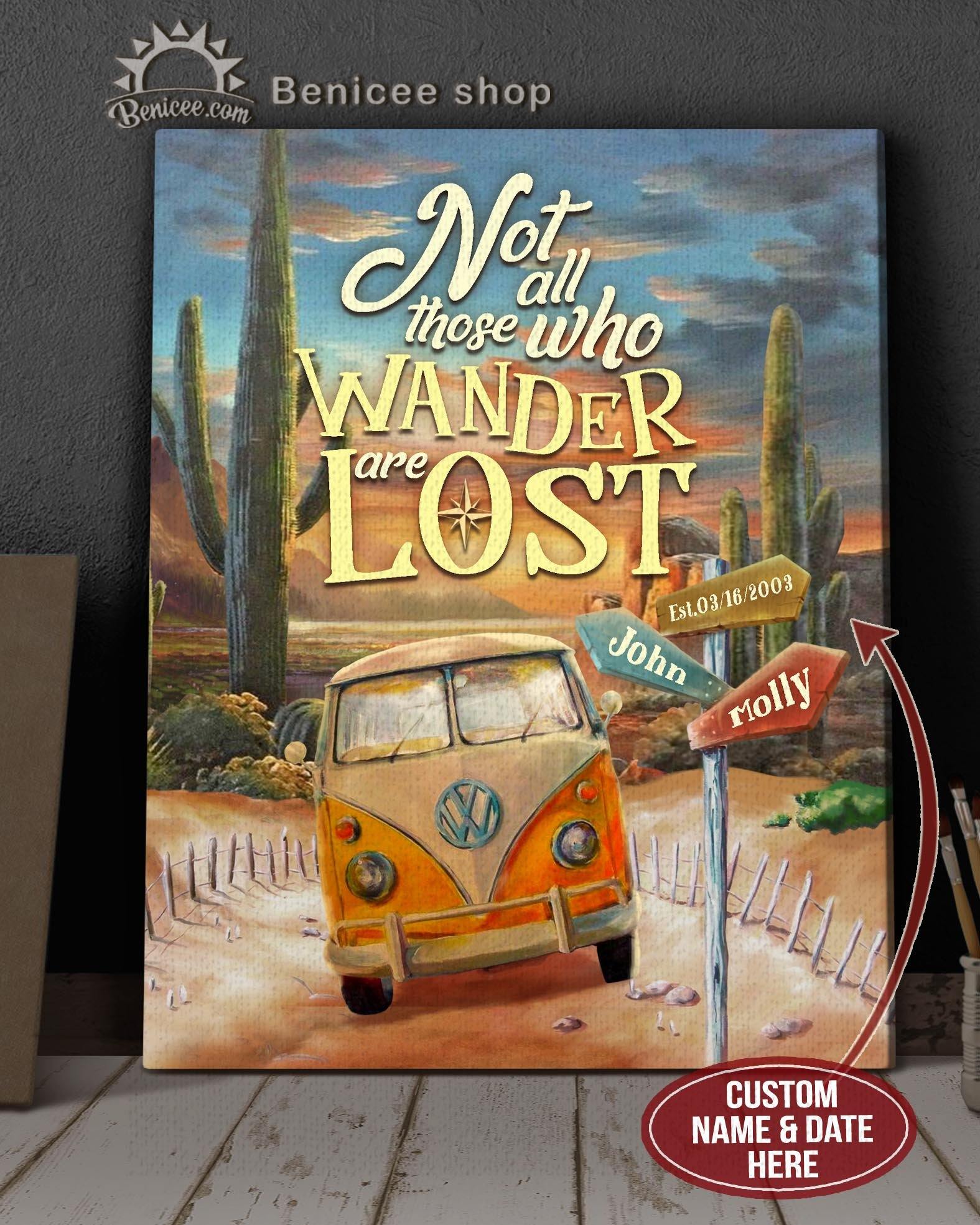 Benicee Custom Name Wilderness, Wander Lost, Vw Camper Van, Camping, Cactus Sign Wall Art Canvas