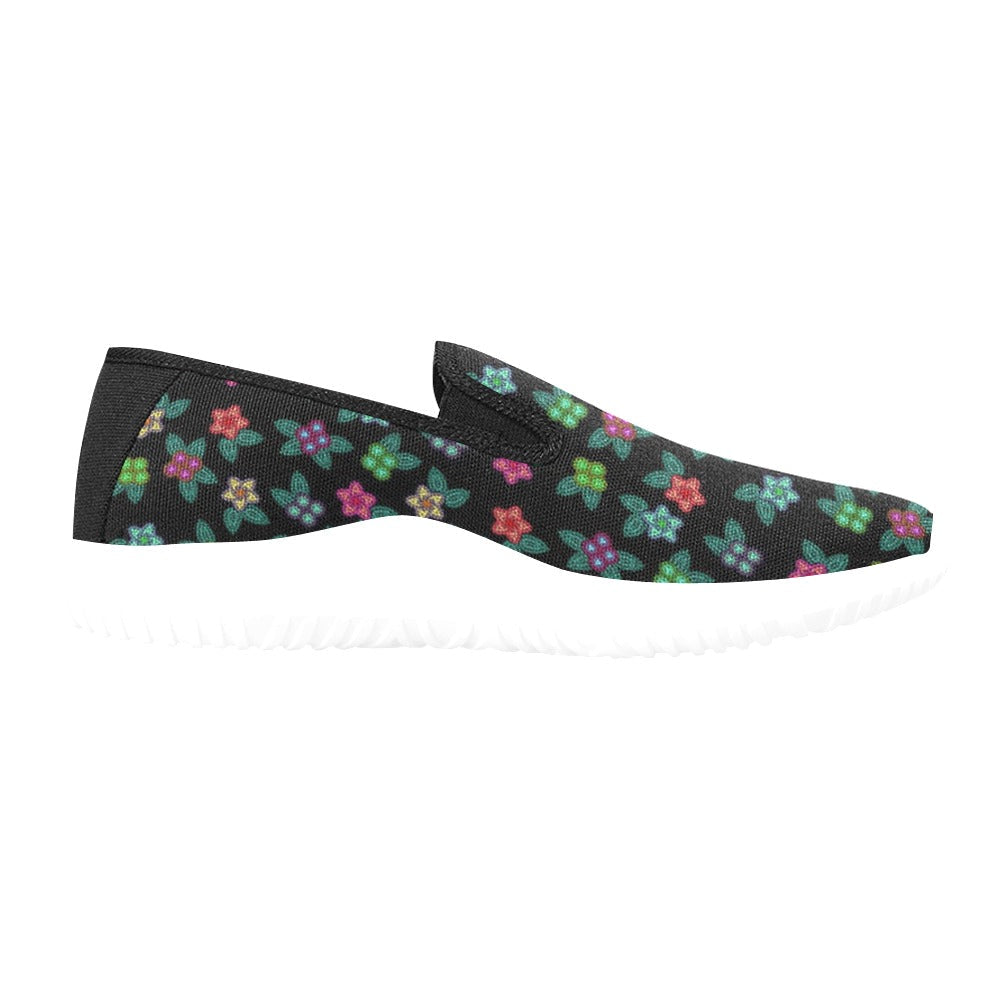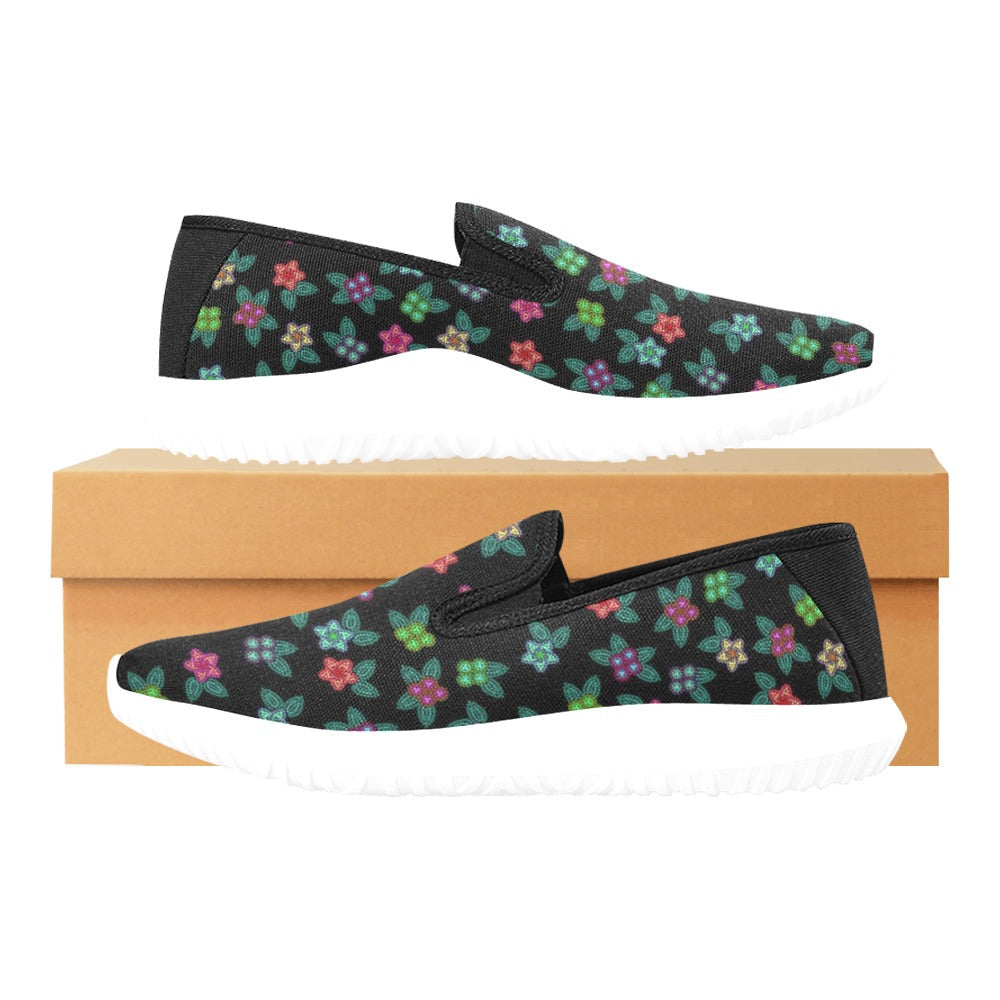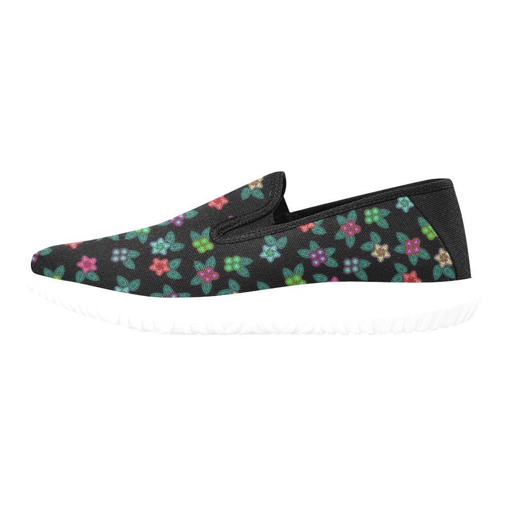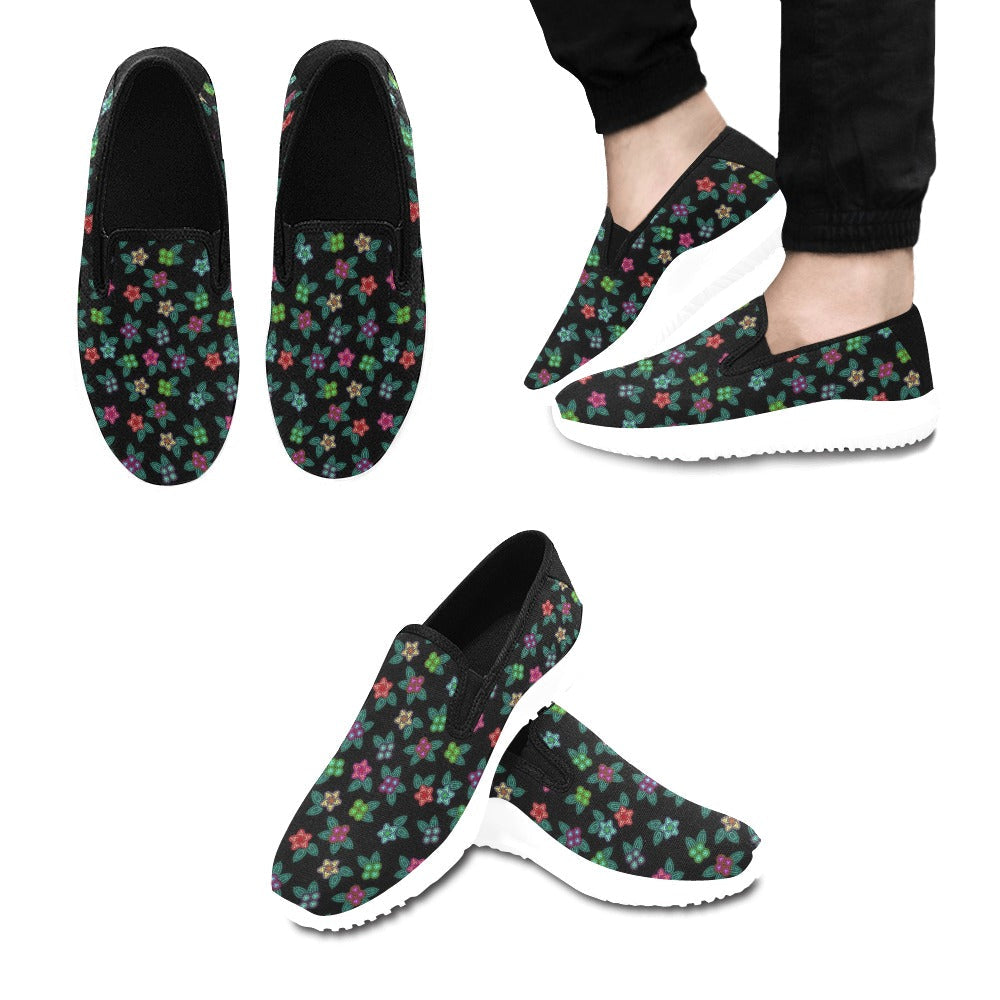Berry Flowers Black Orion Slip-On Women’S Canvas Sneakers (Model 042)