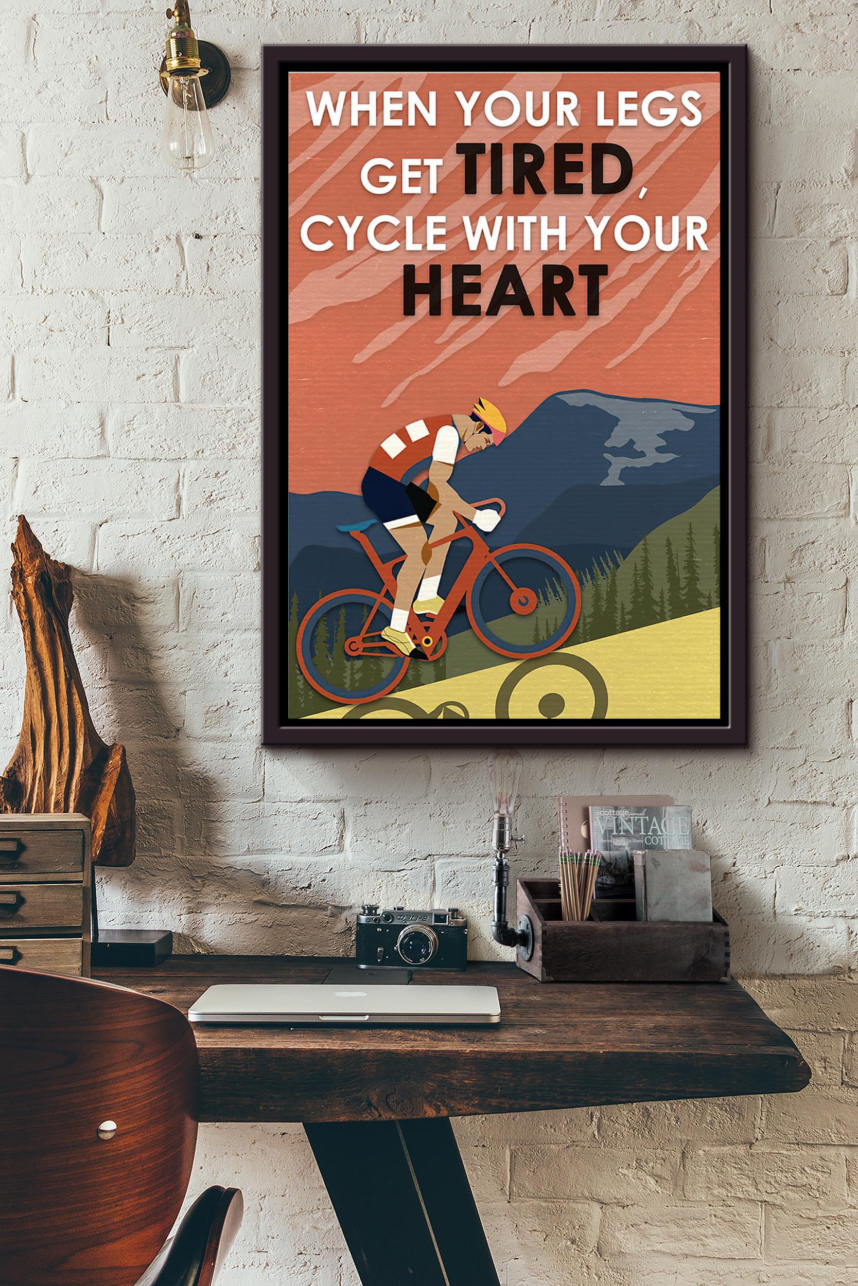 Bicycle Cycle With Your Heart Inspiration Poster Framed Matte Canvas