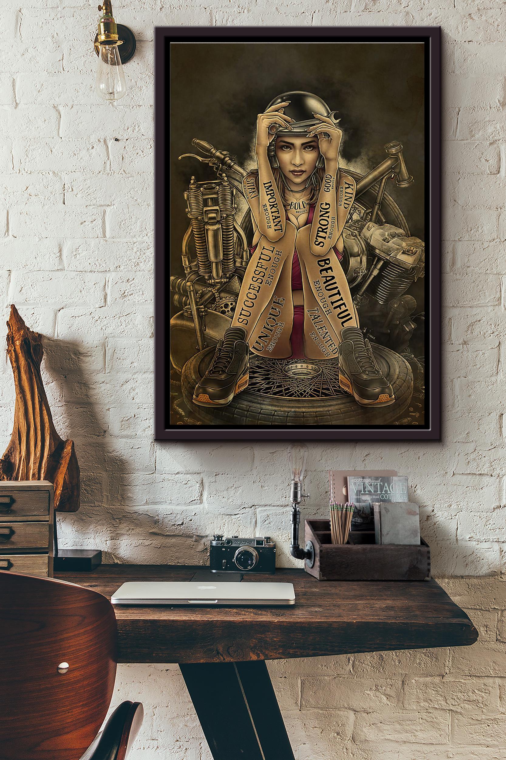 Biker Girl She Is Important Strong Successful Beautiful Enough Poster Framed Matte Canvas