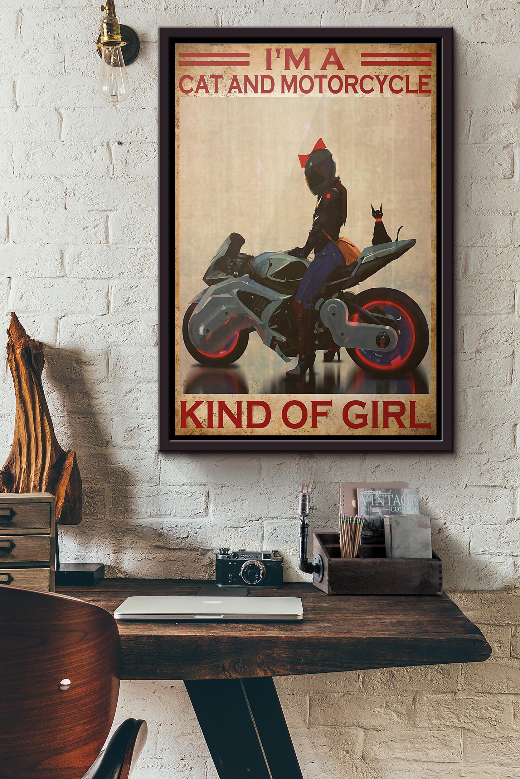 Biker Im A Cat And Motorcycle Kind Of Girl Poster Framed Matte Canvas