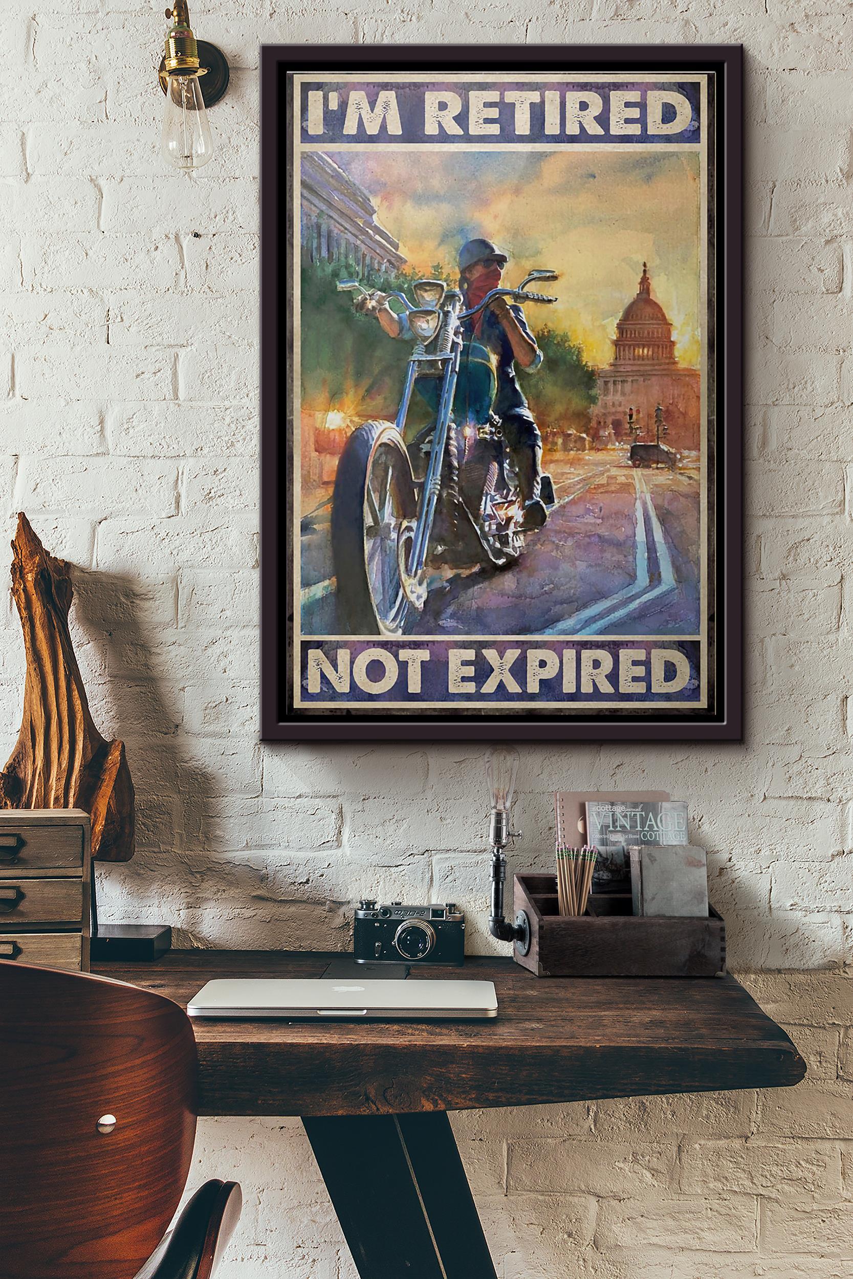 Biker Im Retired Not Expired Poster Framed Matte Canvas