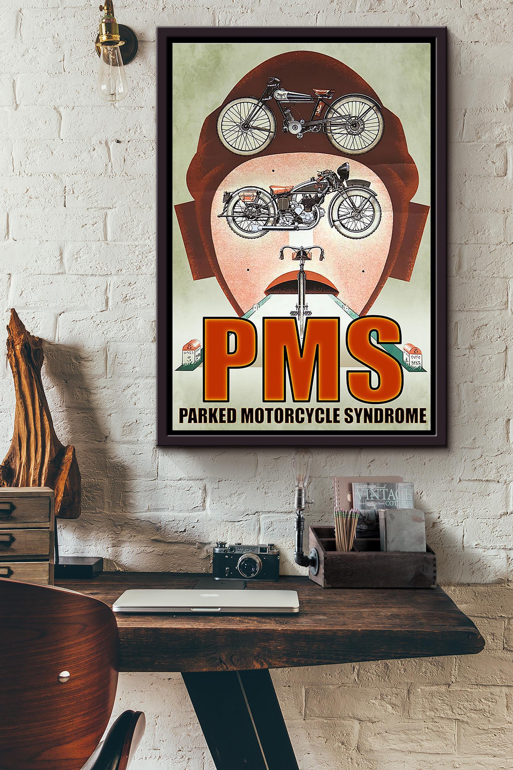 Biker Parked Motorcycle Syndrome Pms Poster Framed Matte Canvas