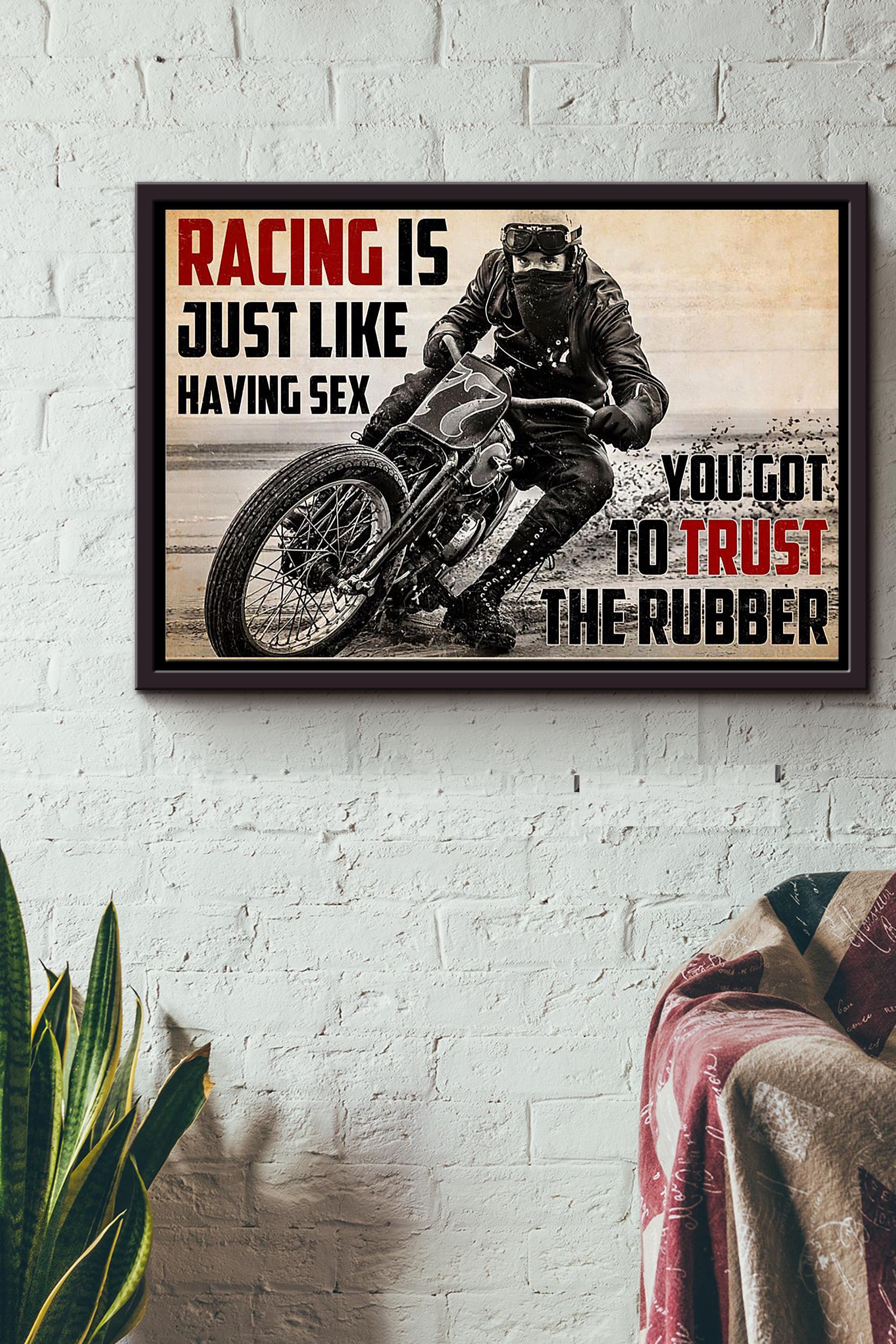 Biker Racing Is Just Like Having Sex You Got To Trust The Rubber Poster N Framed Matte Canvas