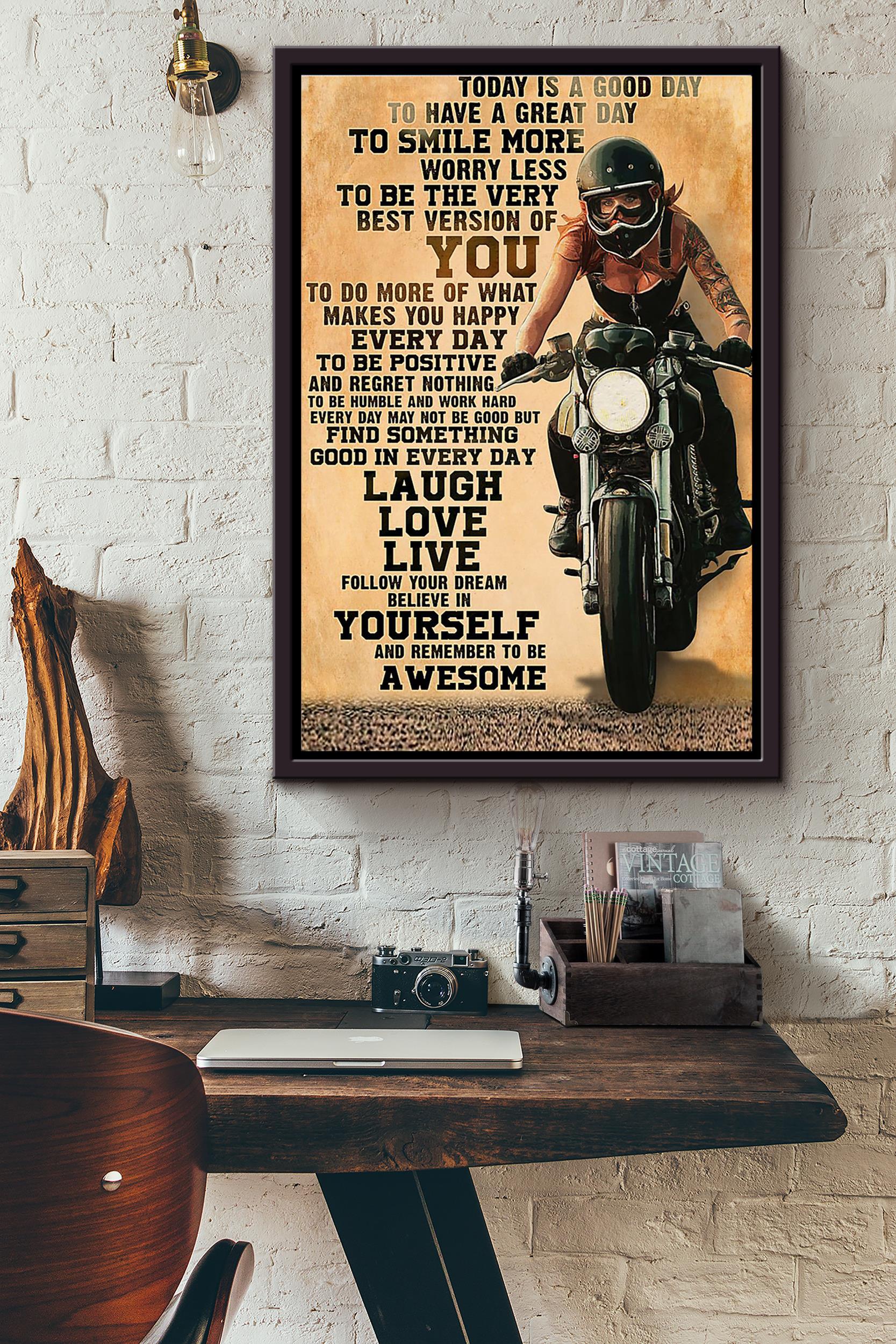 Biker Today Is A Good Day To Have A Great Day Poster Framed Matte Canvas