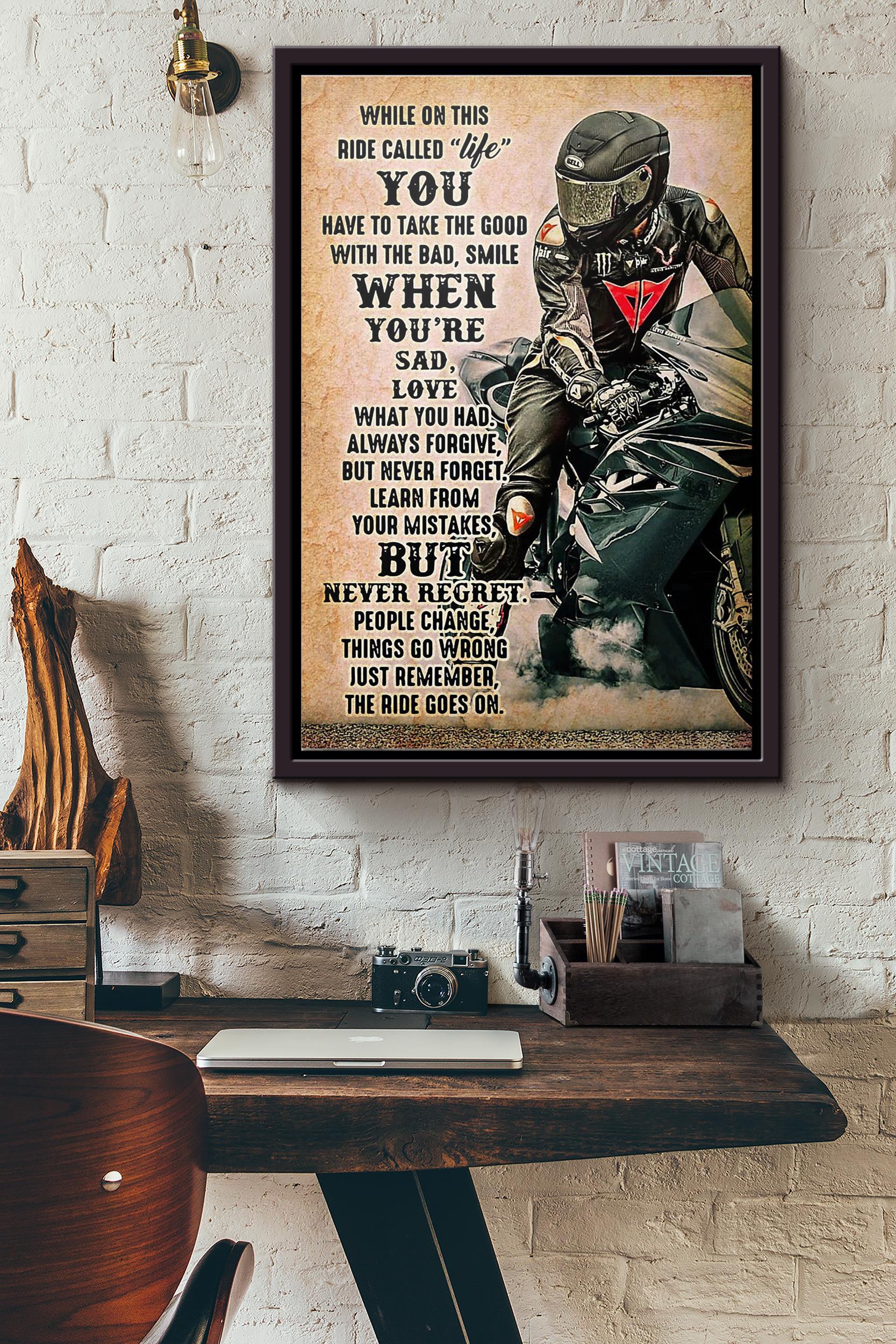 Biker While On This Ride Called Life Poster Framed Matte Canvas