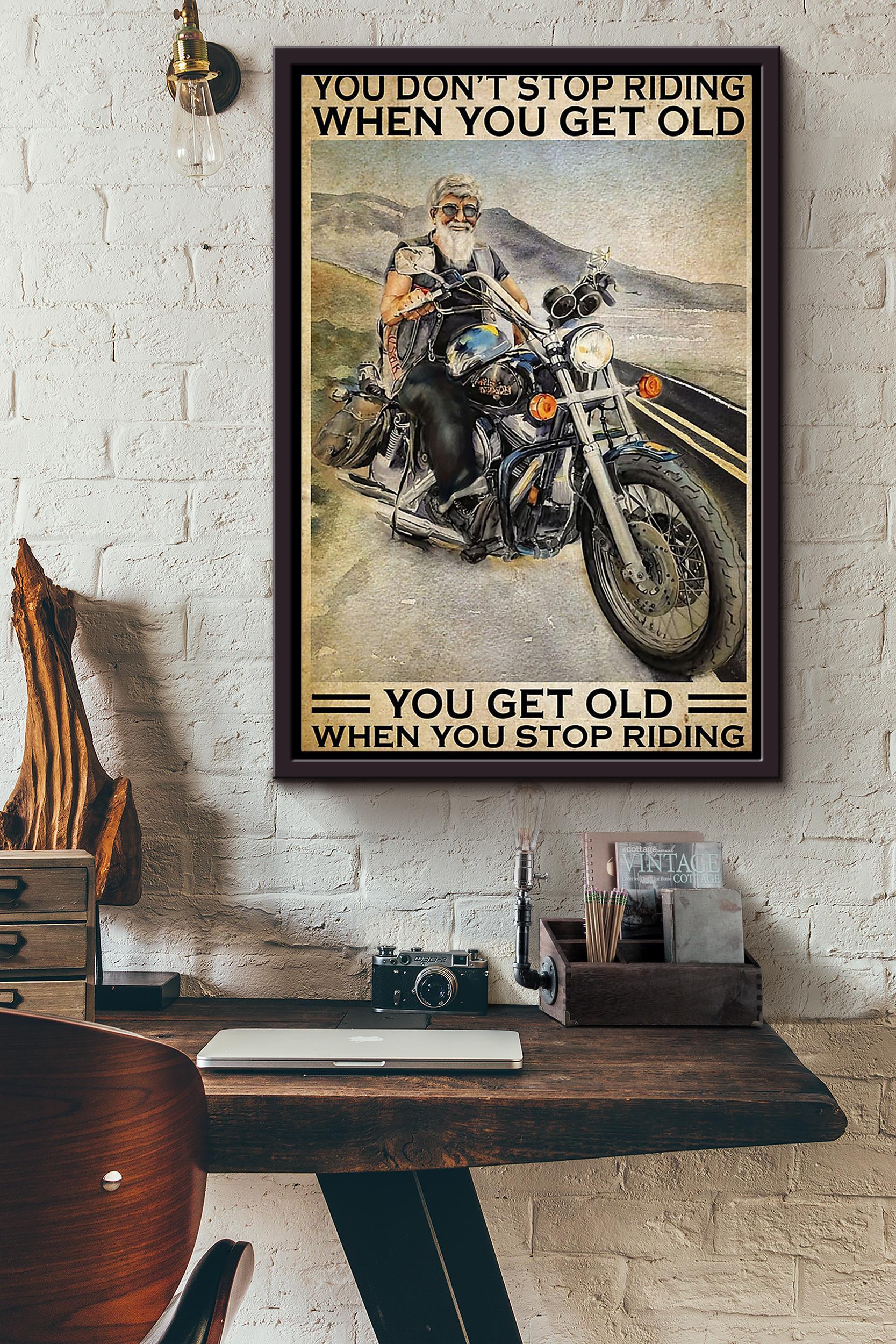 Biker You Domt Stop Riding When You Get Old You Get Old When You Stop Riding Poster Framed Matte Canvas