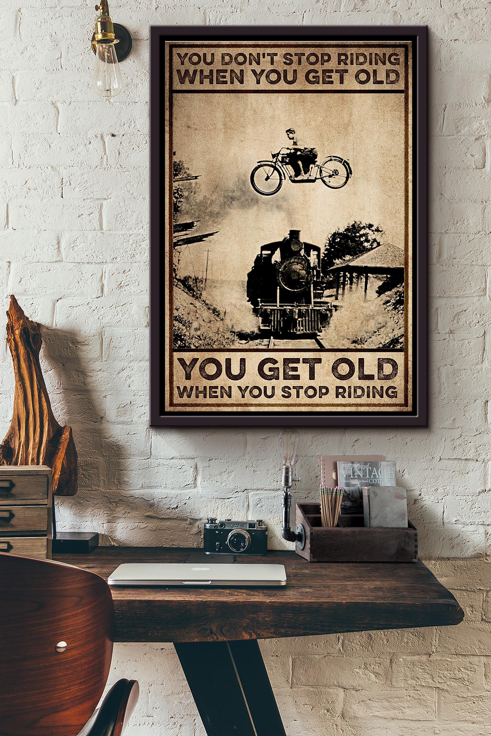 Biker You Get Old When You Stop Riding Classic Poster Framed Matte Canvas