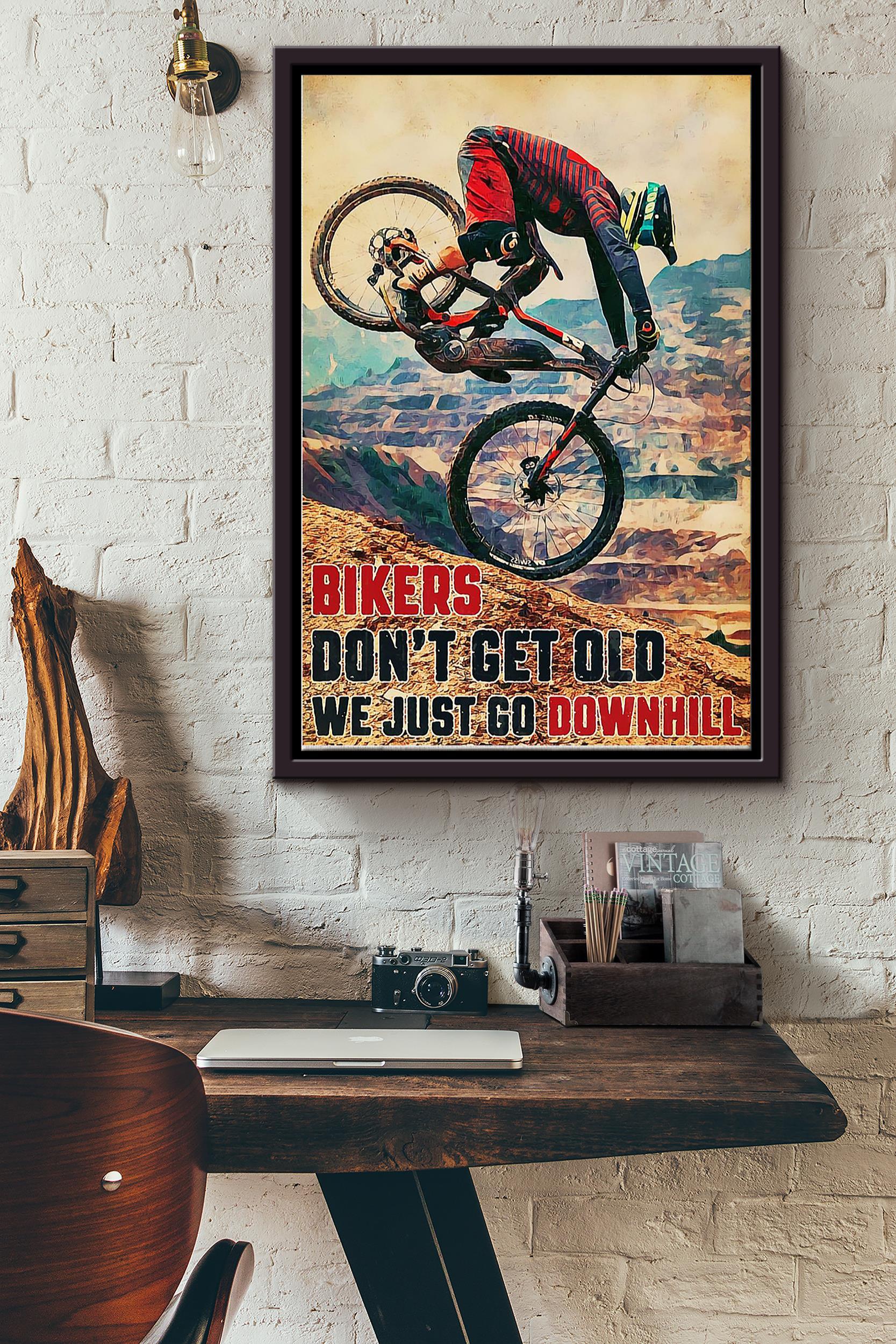 Bikers Dont Get Old We Just Go Downhill Cycling Poster Framed Matte Canvas