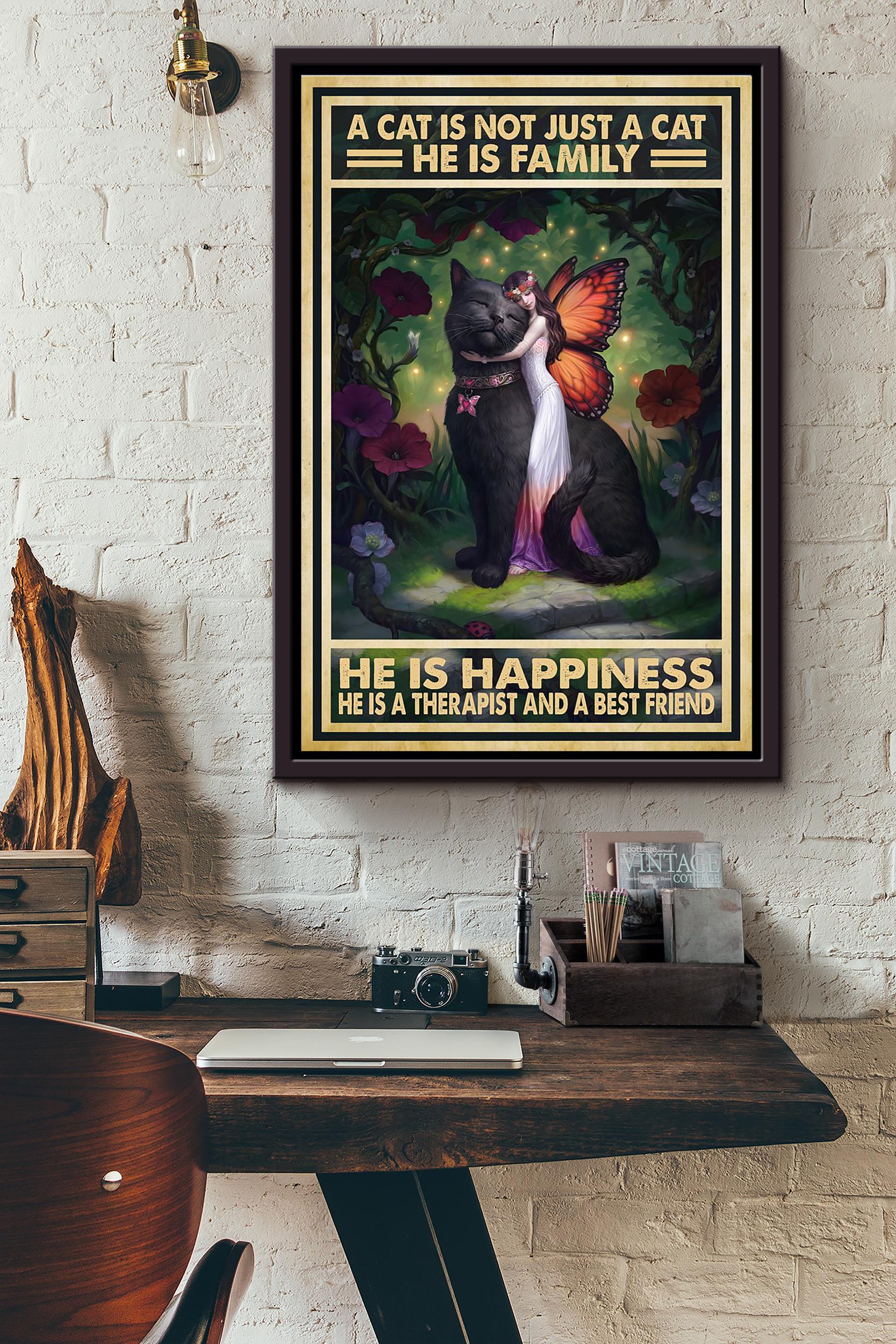 Black Cat A Cat Is Not Just A Cat He Is Family Poster Framed Matte Canvas