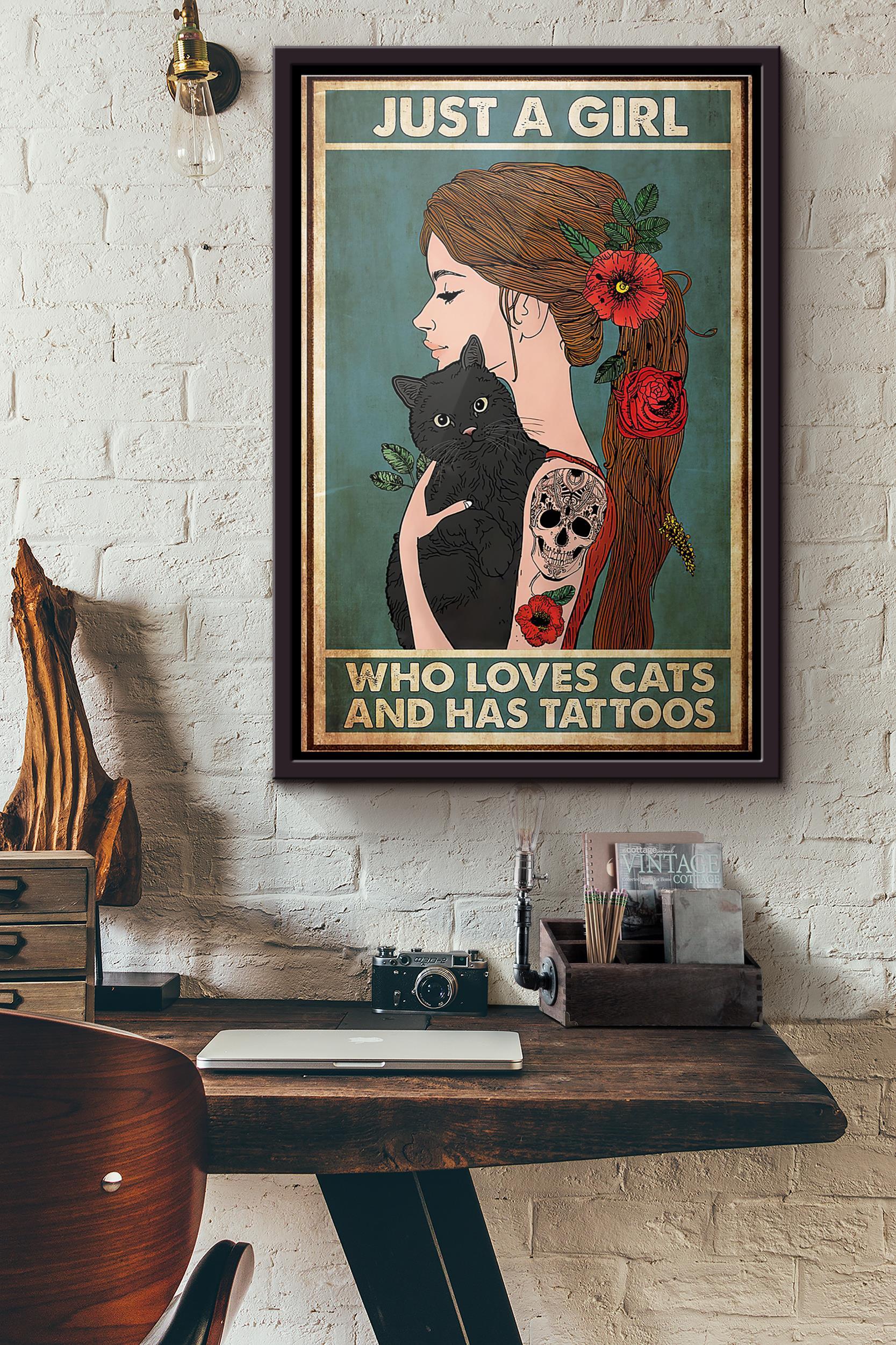 Black Cat And Tattoo Girl Just A Girl Who Loves Cats And Has Tattoos Poster Framed Matte Canvas