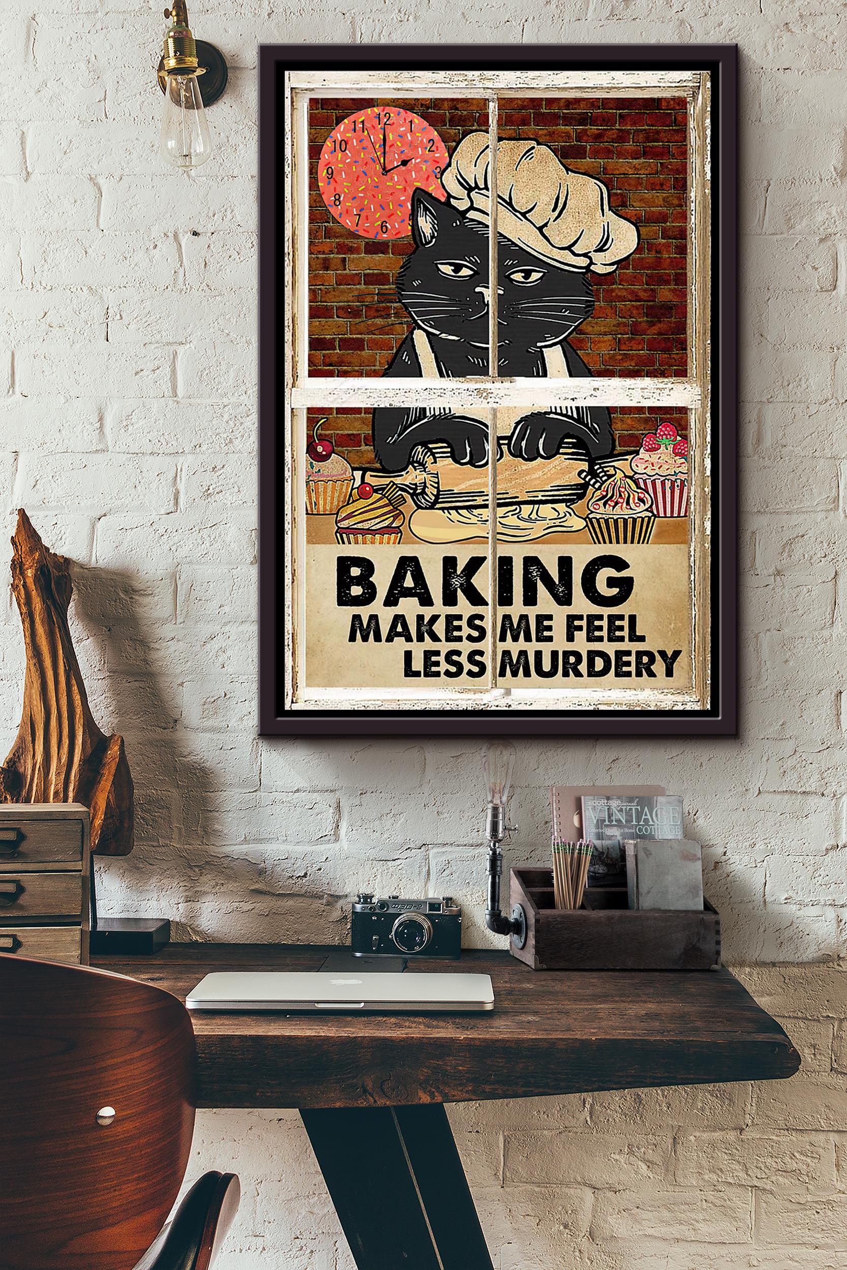 Black Cat Baking Makes Me Feel Less Murdery Poster Framed Matte Canvas